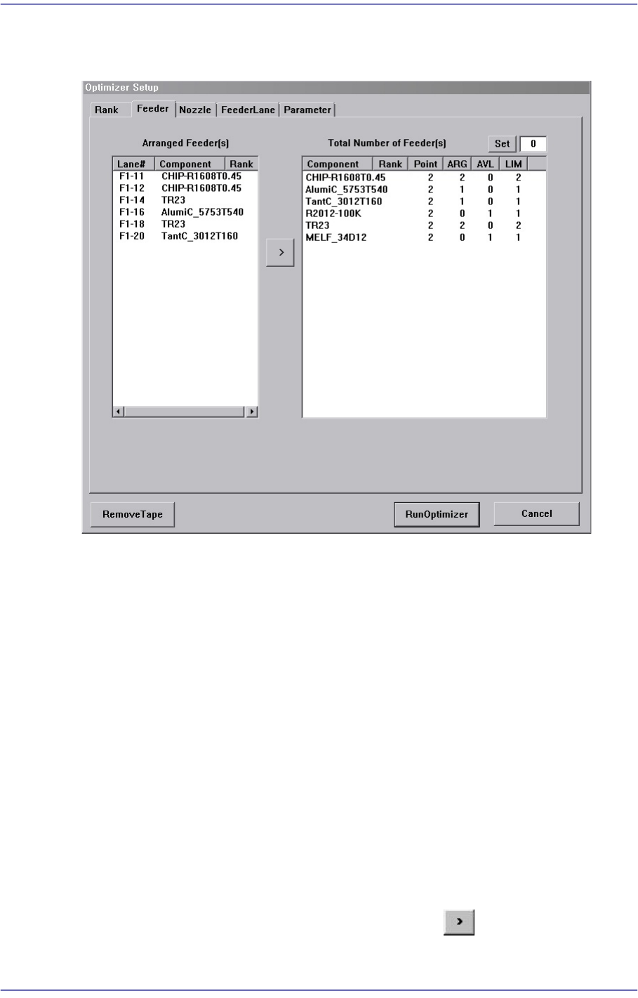 Figure12.4 “Optimizer Setup: Feeder Arrangement” dialog box