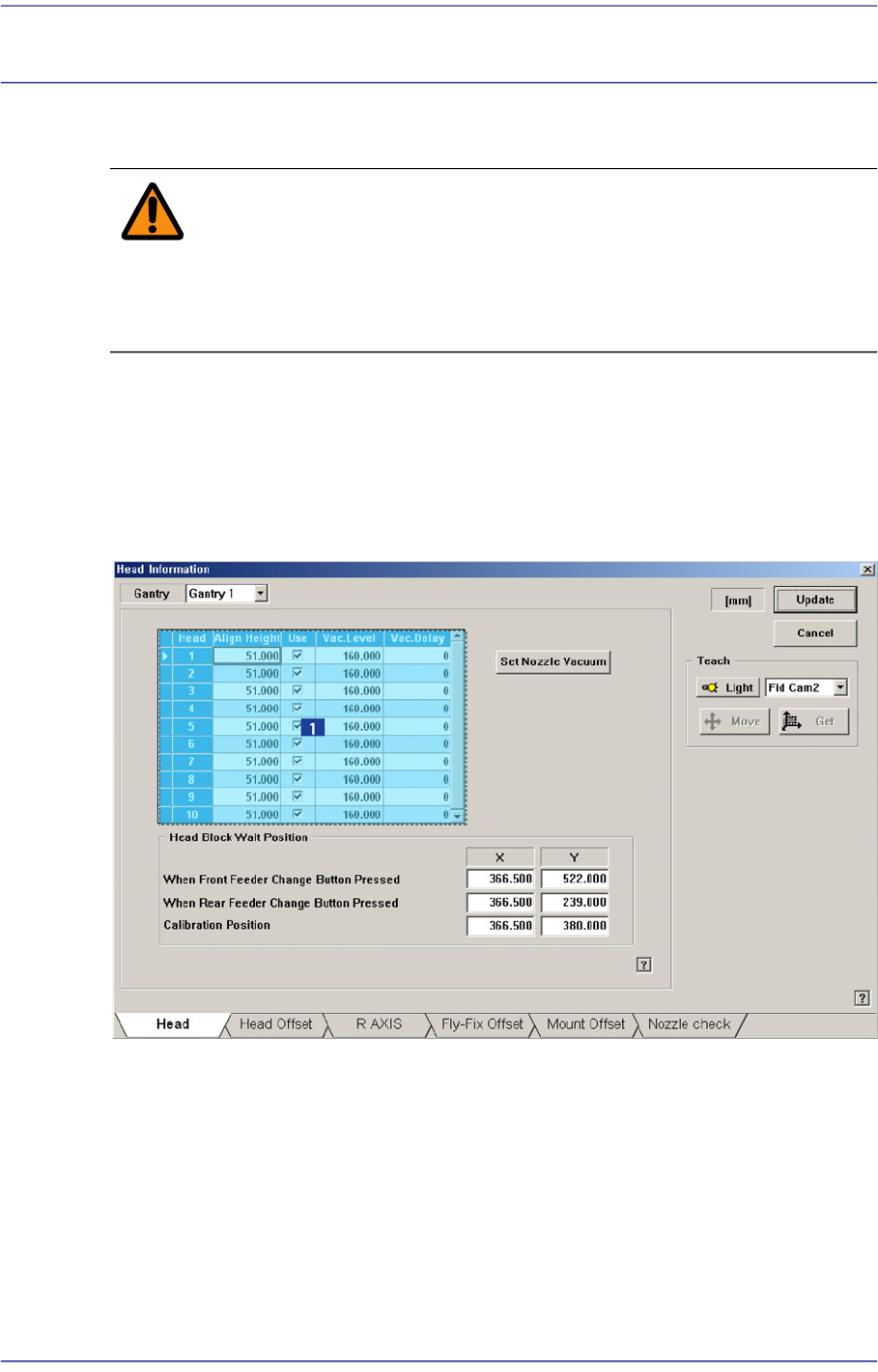 Used to set the Vacuum Delay differently by heads. If a certain head cannot