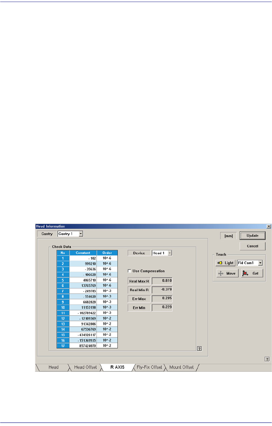compensate the R axis. Data in this dialog box is updated automatically if the R-Axis