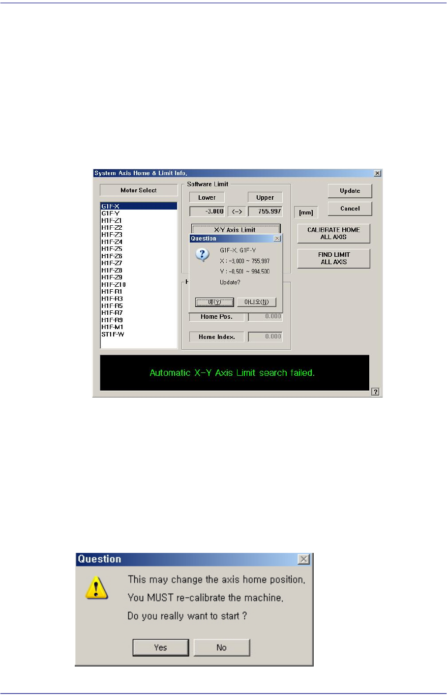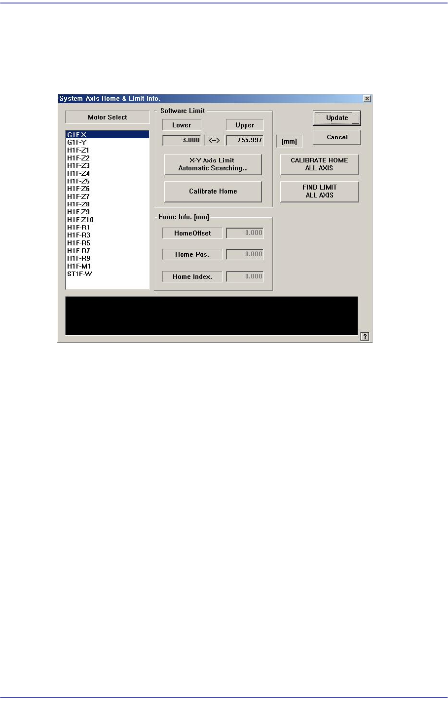 14-24 Fast Flexible Placer SM481(L) PLUS Administ r ator’s Guide 14.3.1. Axis Home Calibration Sets the limit position of each axis to move. When thi s button is clicked on, the following dialog box is displayed. Figure1…