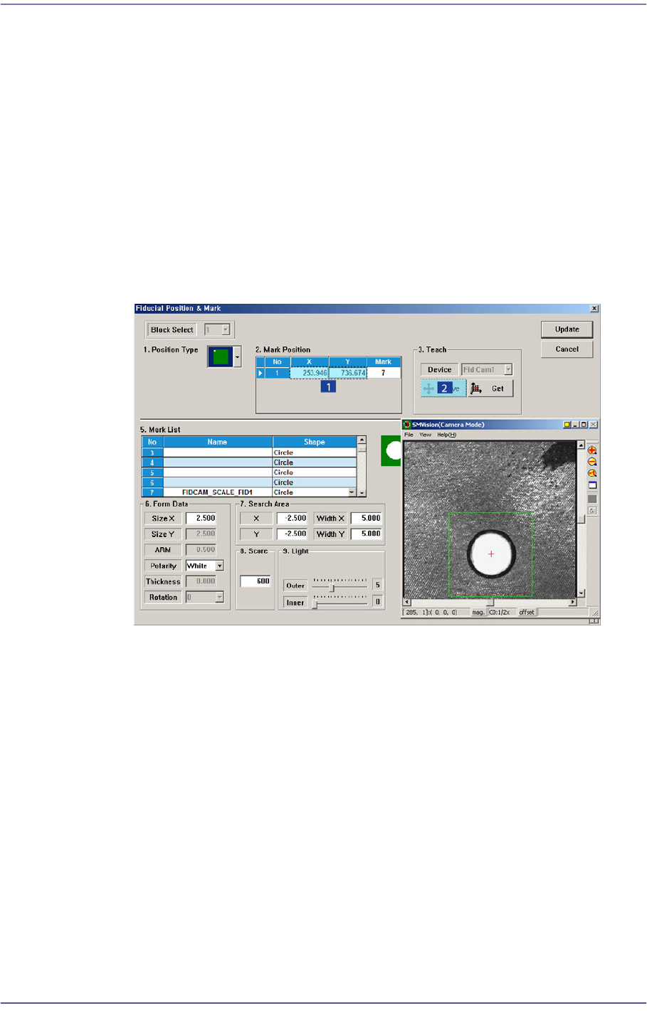 Control’ dialog box so that the fiducial mark that is seen in the ‘SMVision’