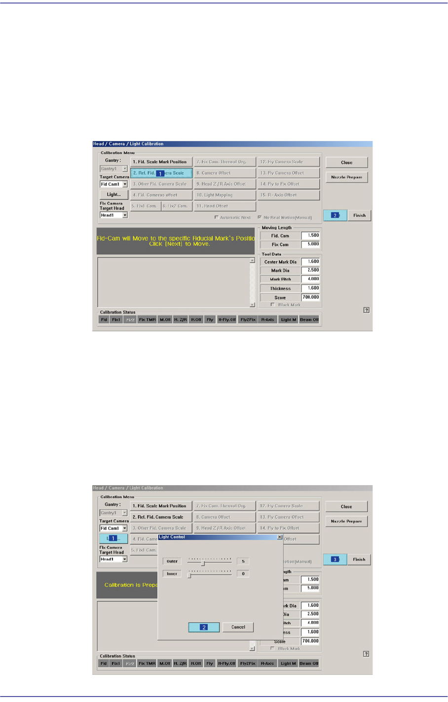 2. If the <2. Ref. Fid. Camera Scale> button is clicked, a message “Set calibration