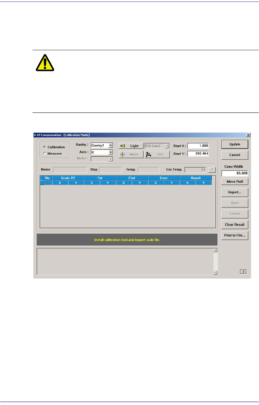 14-40 Fast Flexible Placer SM481(L) PLUS Administ r ator’s Guide <Axis> combo box Select the axis to b e compensated. Compensation c a n be made only for the X axis. <Light> but ton It is used to adjust t…