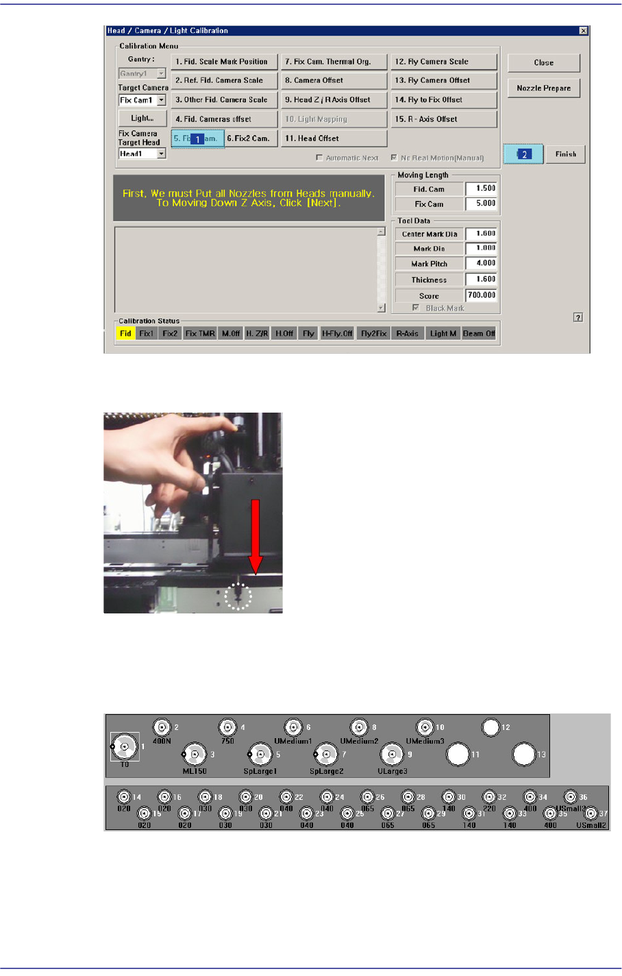 1. If the <5. Fix1 Camera> button is clicked, the message “First, We must Put all Nozzles