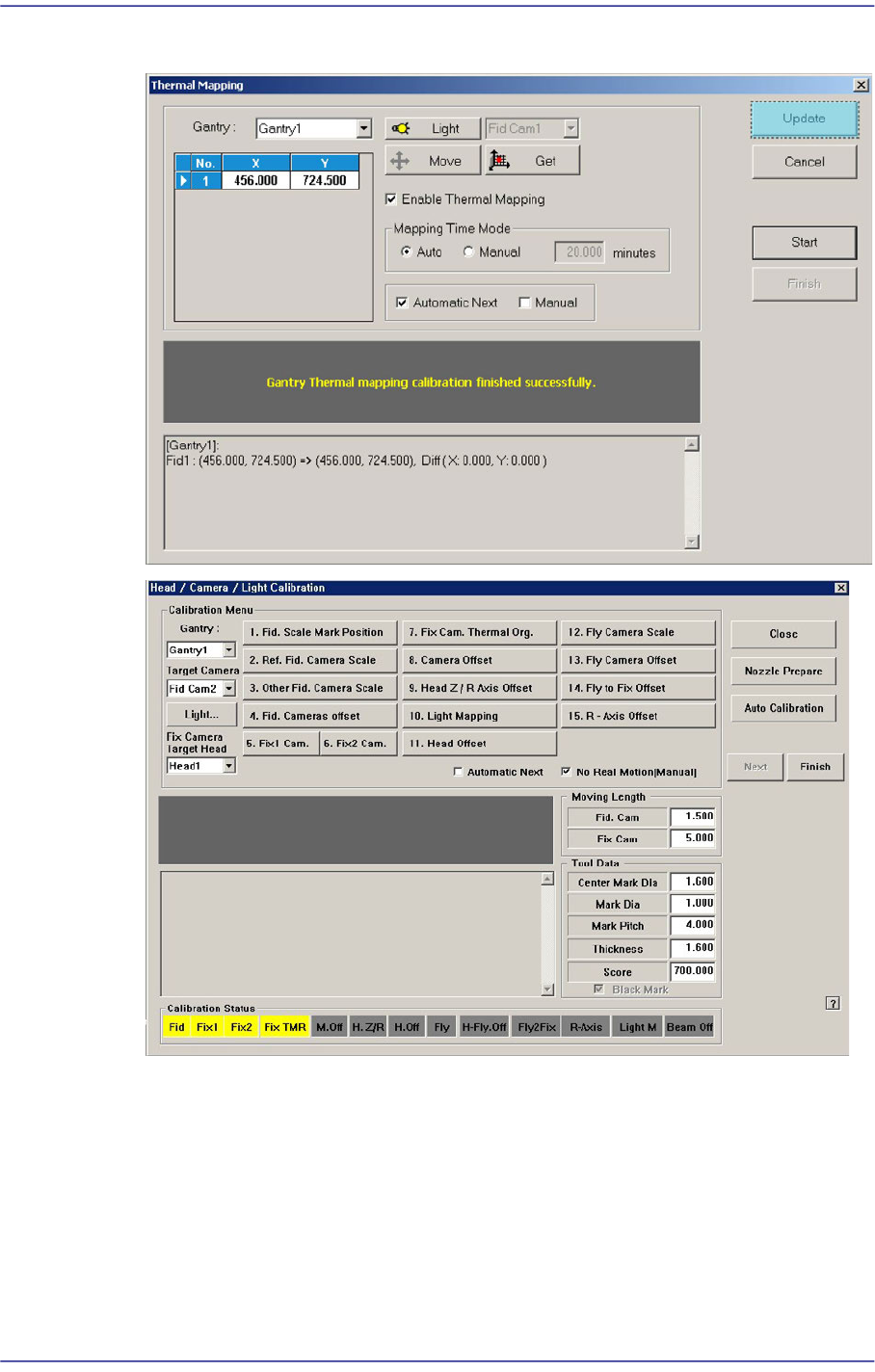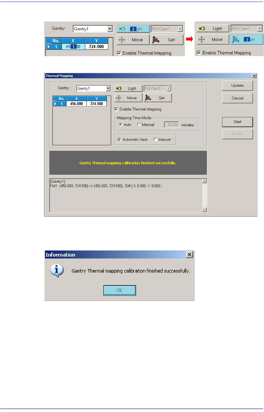 4. Once automatic calibration is completed, a message "Gantry Thermal mapping