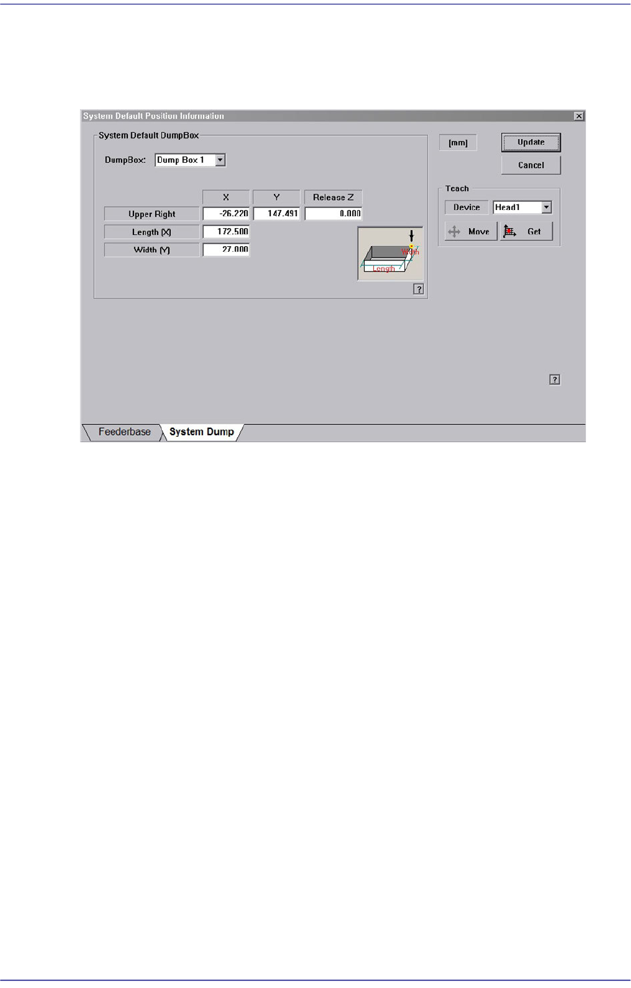Sets the X and Y positions of the head when dumping the components. Teach the