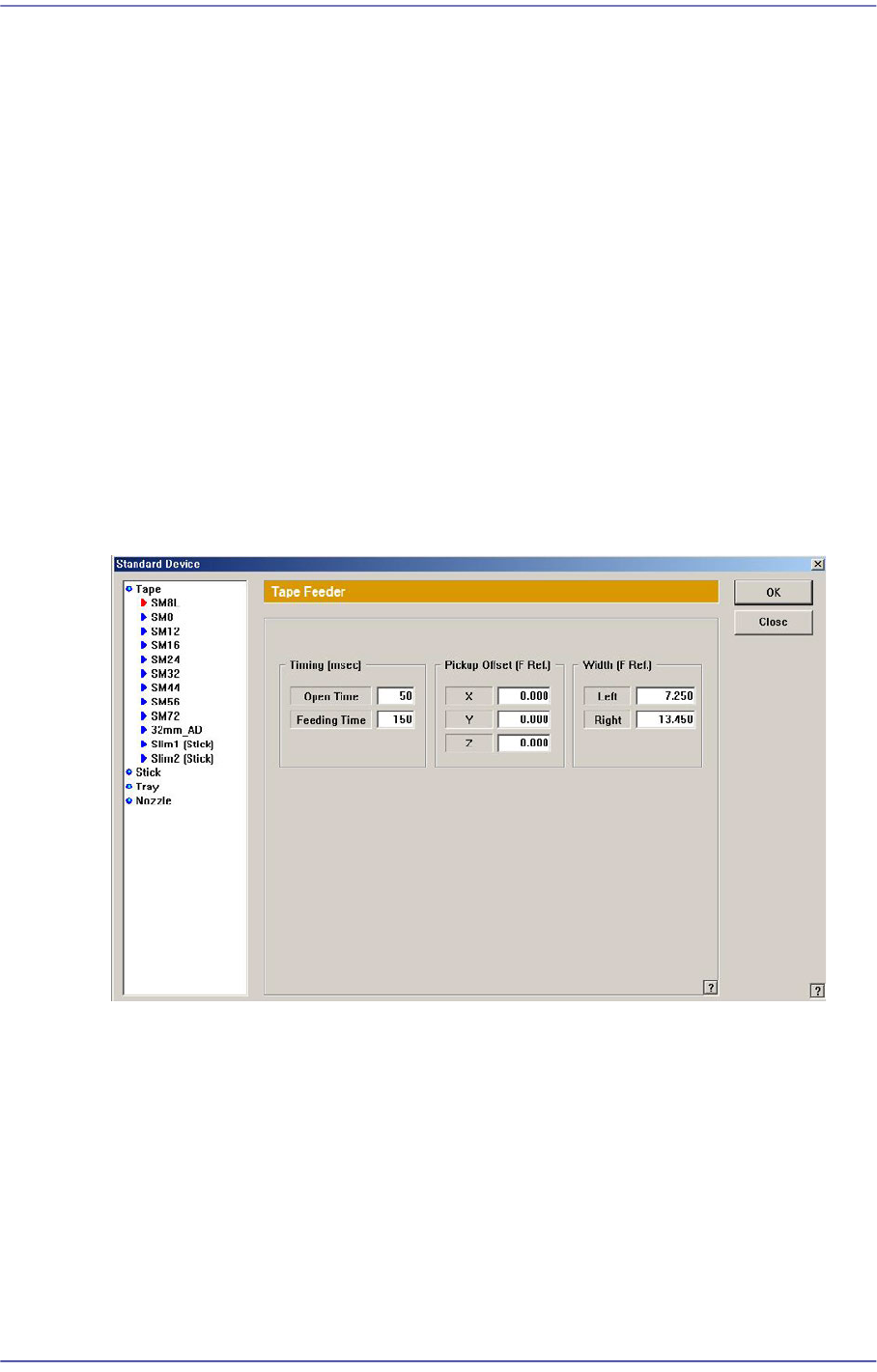 position of other feeders against the pick-up position of the 8mm tape feeder.