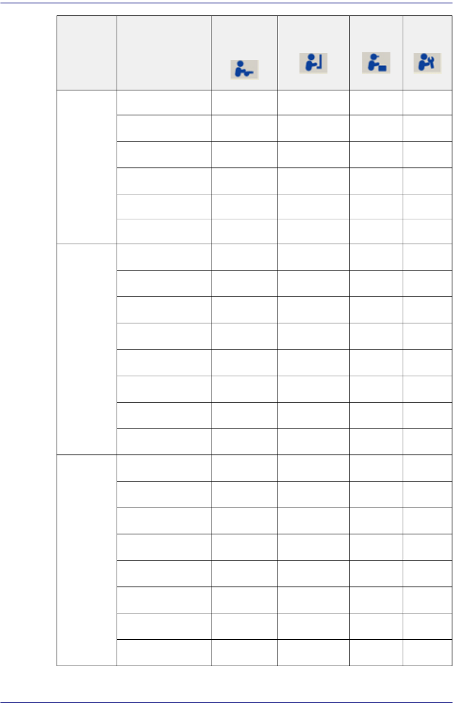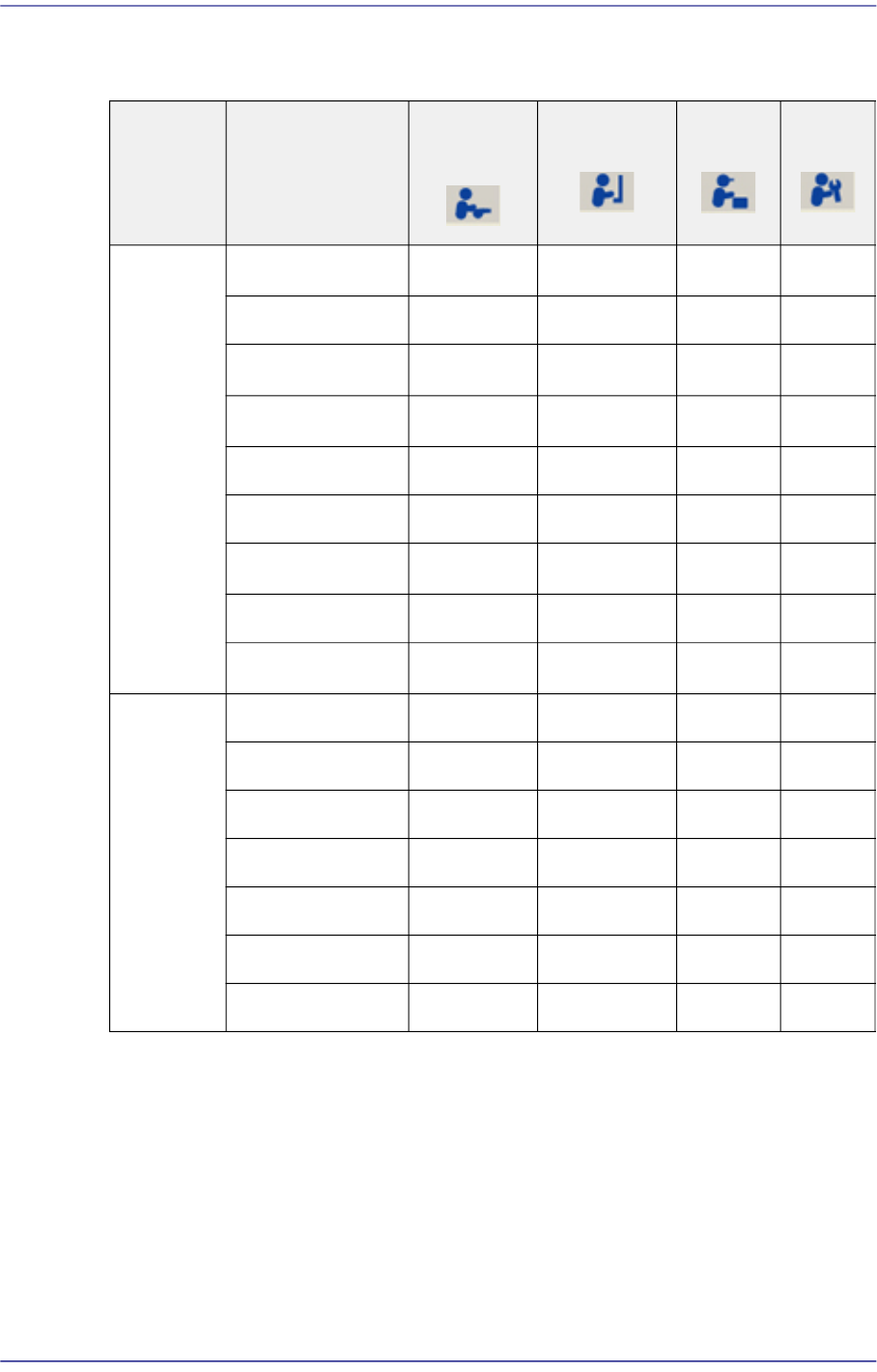 The following table shows the authorization for the MMI menu according to the users..