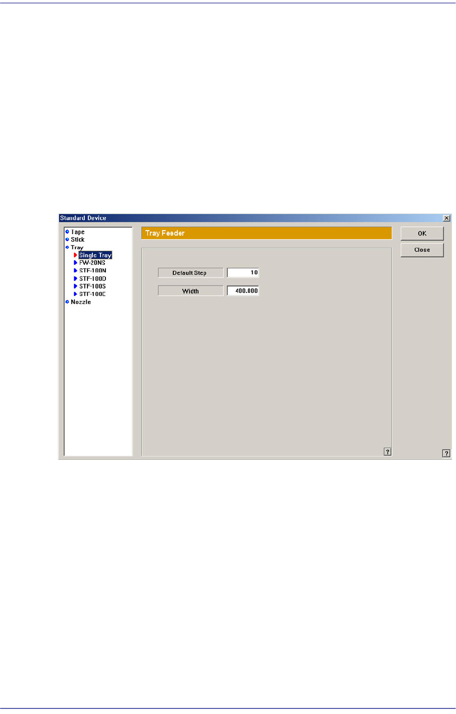 Figure15.24 “Standard Device –Tray” dialog box