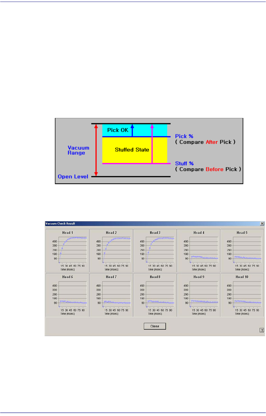 Displays the vacuum level that is used as a criteria for determining the component