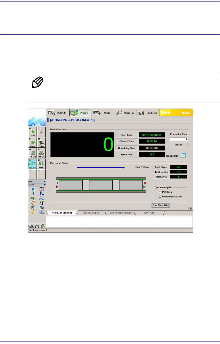Clicking the ‘Production Information’ submenu button of the ‘Production’ menu will