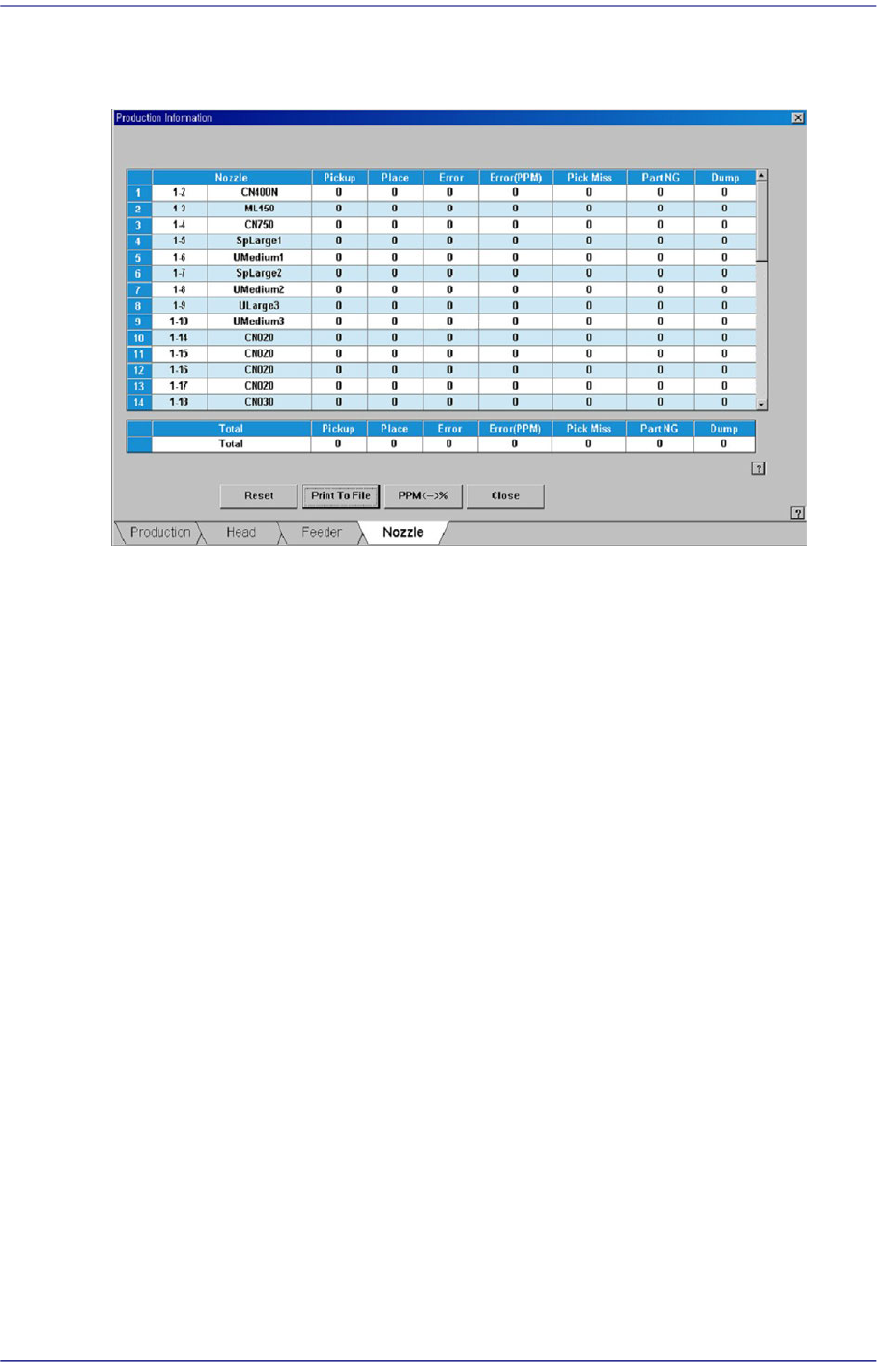 18-8 Fast Flexible Placer SM481(L) PLUS Administ r ator’s Guide 18.1.4. Nozzle Displays the operation information of ea c h nozzle. <Nozzle> column Indicates the t ype of nozzles and number of holes where nozzles…
