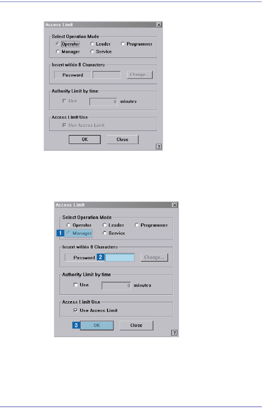 (1) Select the <Manager> option Button in the <Select Operation Mode> group