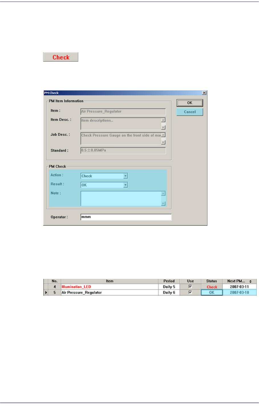 column is changed from “Check” to “OK” and the date is updated to the PM Check