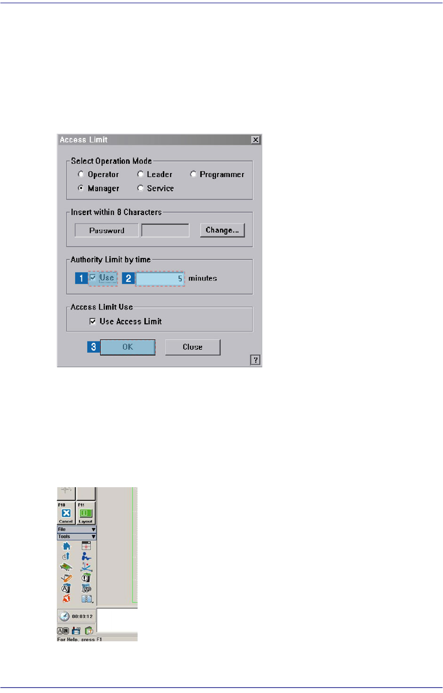 User authorization is automatically changed to ‘Operator’ after the set period of time.