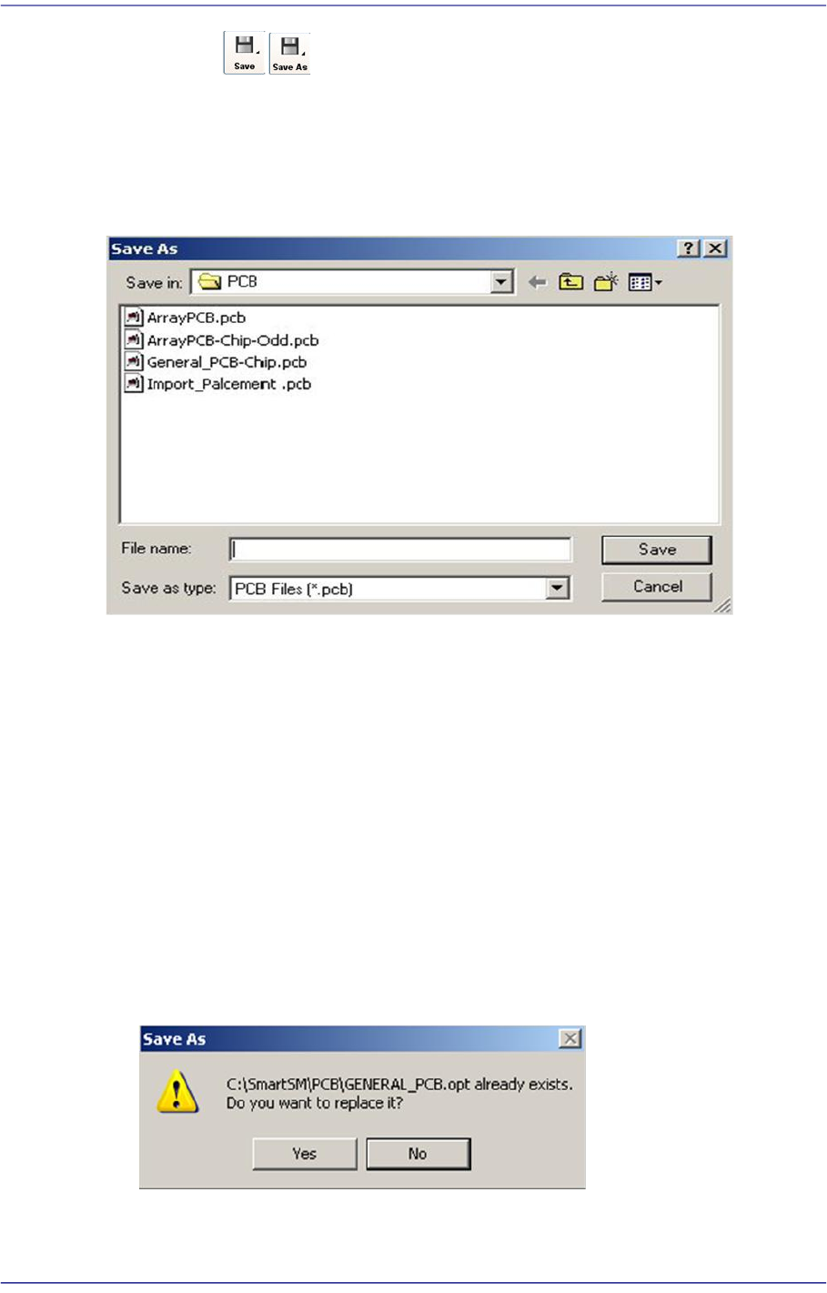 3-9 File Shortcut Menu 3.3. Save [Ctrl+S] Used to perform setup related to the current PCB or to save the completed file. Clicking the ‘Save’ icon Button and selecting ‘Save’ or ‘Save As’ will display the following dialo…