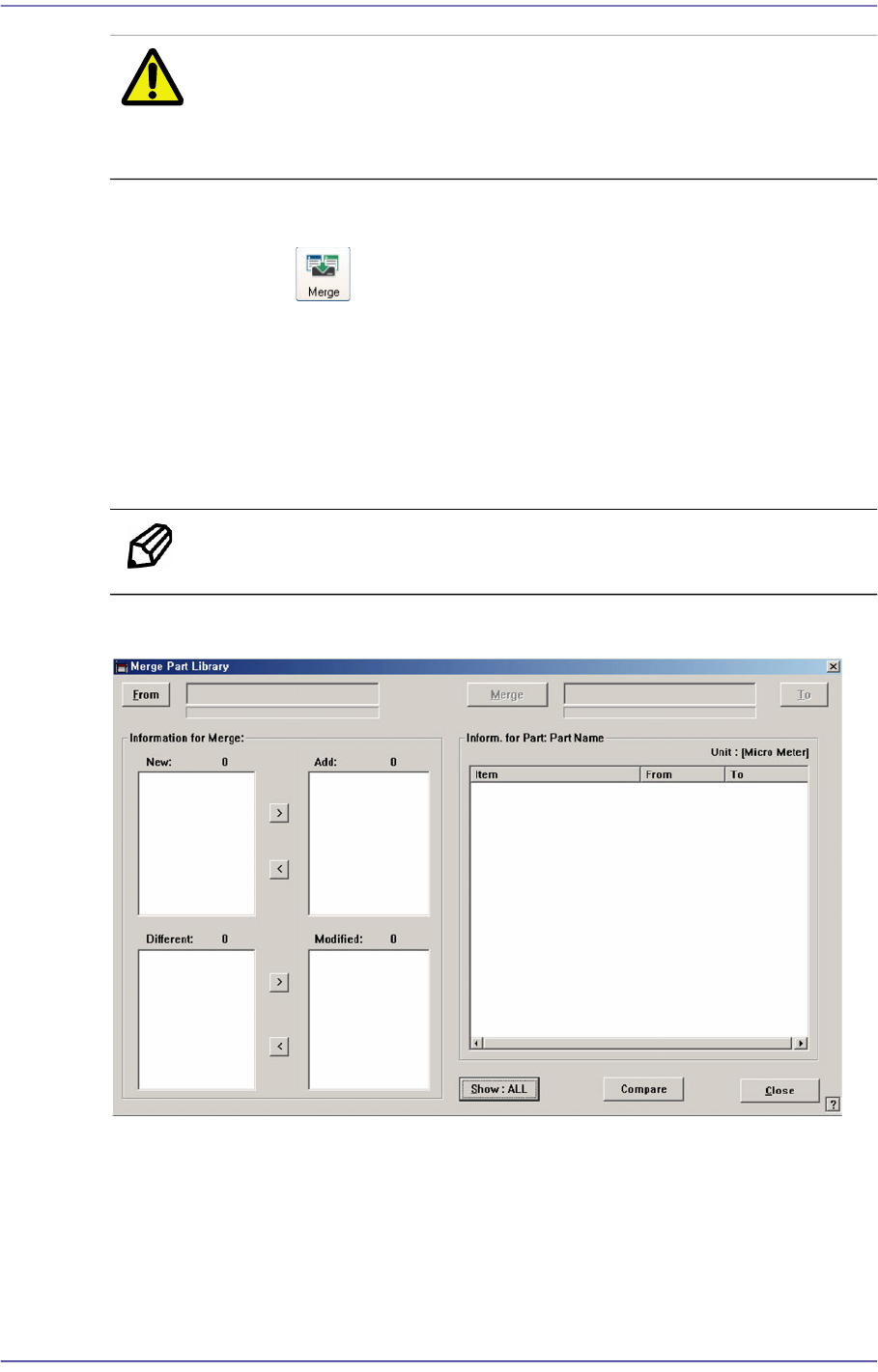 Clicking the ‘Merge Part Library’ icon Button will display the following dialog box.