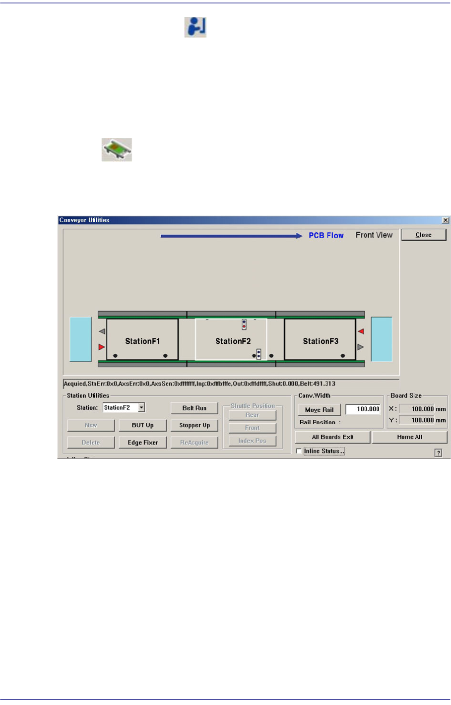 Performs manual operation of BUT, stopper, edge fixer and conveyor belt for the entry,