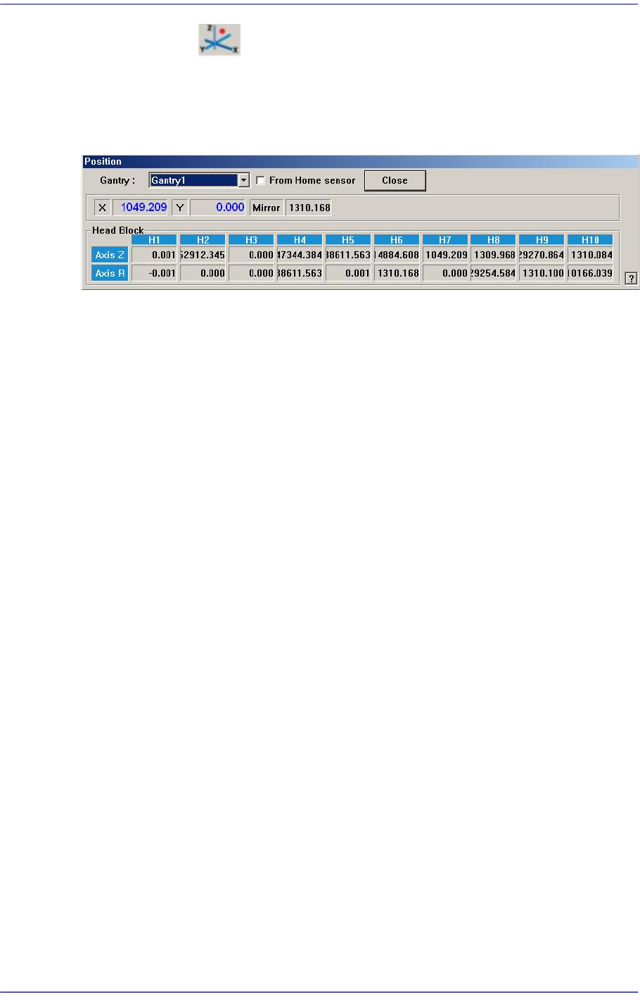 Indicates the present position in X direction of Head 1 at the origin of the