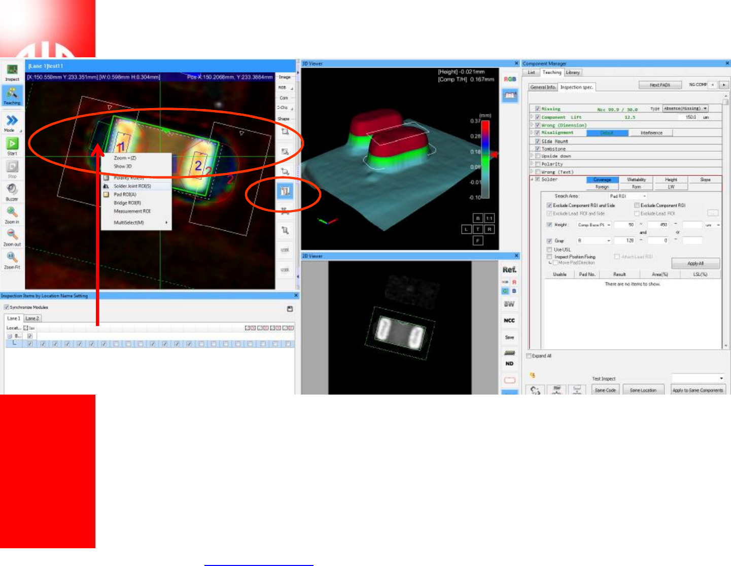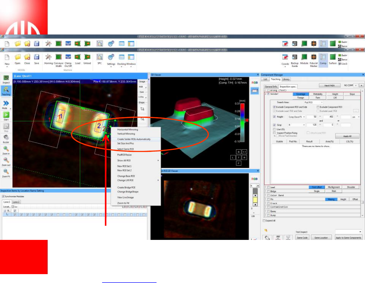 帝仕高國際 有限 公司 D y n a m i t e I n t er na t i o n a l C orp ., 焊 点的 测试 2 画 好 一个 锡膏 框 后 , 左键 点击 焊 点检 查 框,右 键 选择 c r ea t e s olde r R O I au t o m a t i c all y, 可 自动 生成 另外 一侧的 焊盘 检 查 框 P D F c r ea t ed w i t h pd f F a c …