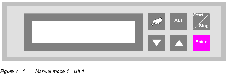 Software version V 40.11 Edition 01/2001 7.1 Manual mode 1 - Lift 1