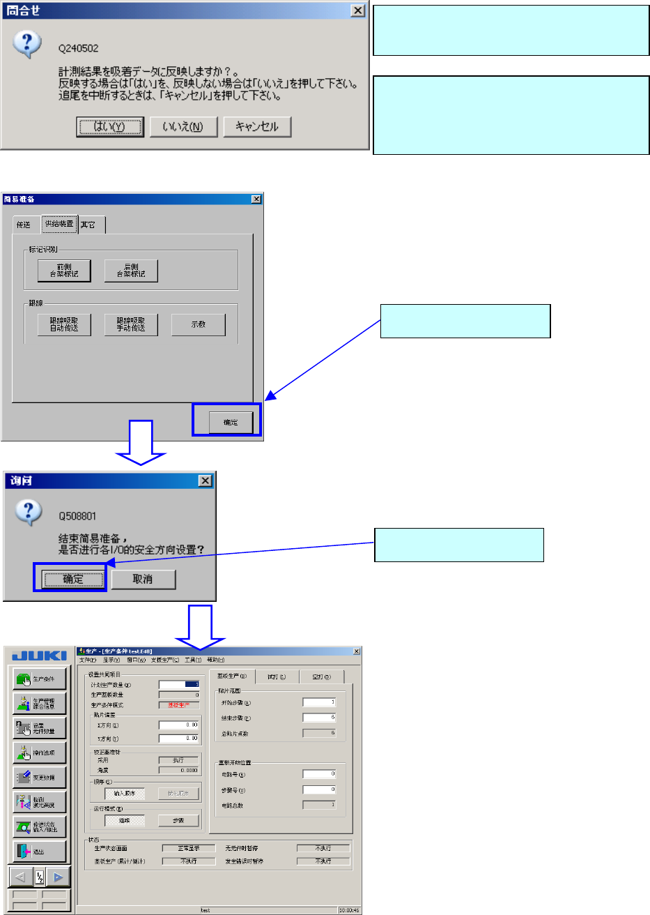 生产即开始。(生产画面的详细内容,请参见『操作手册Ⅱ』的“2-8-2 生产条件画面”。)