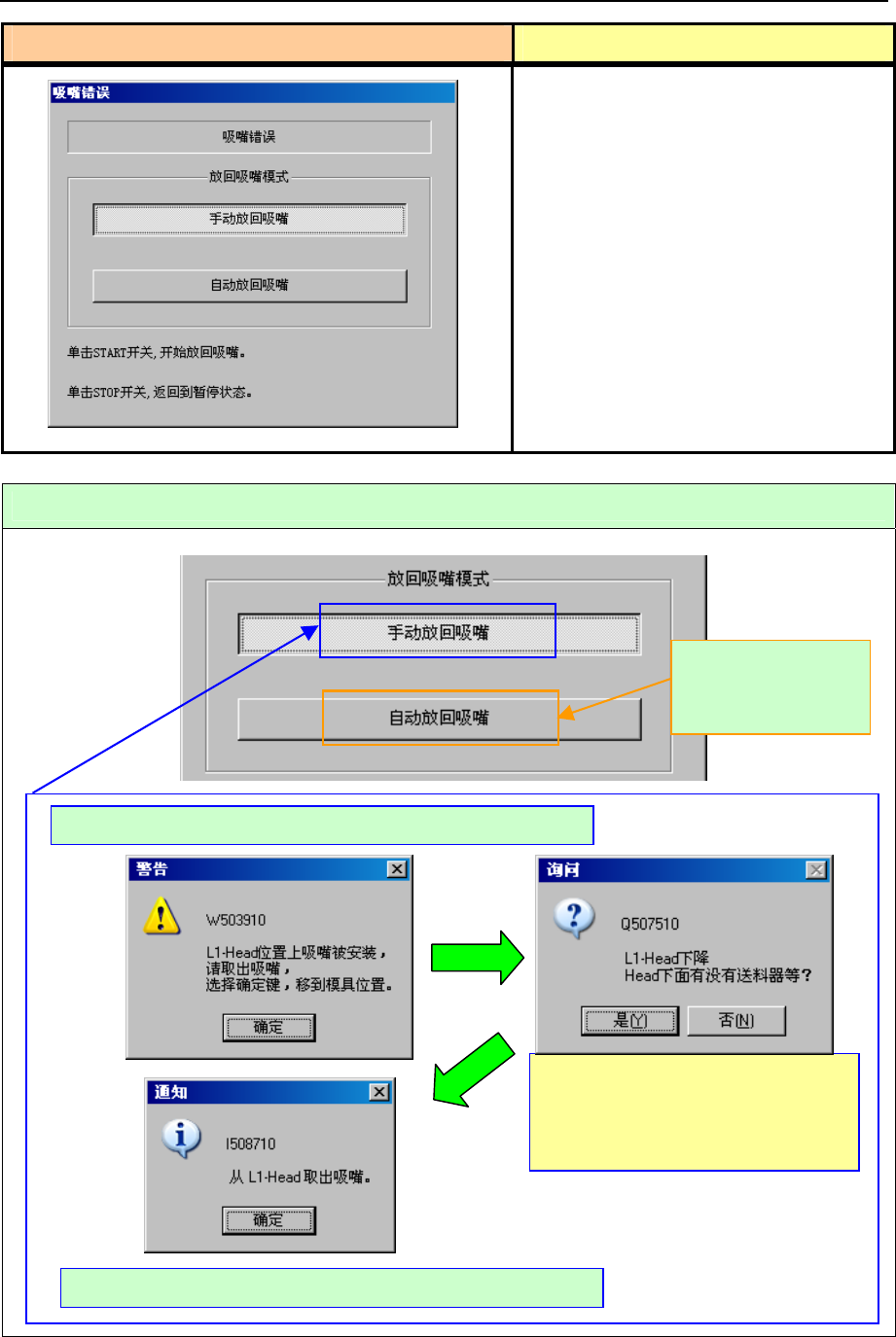 1) 请选择「放回吸嘴模式」,按下开始开关。