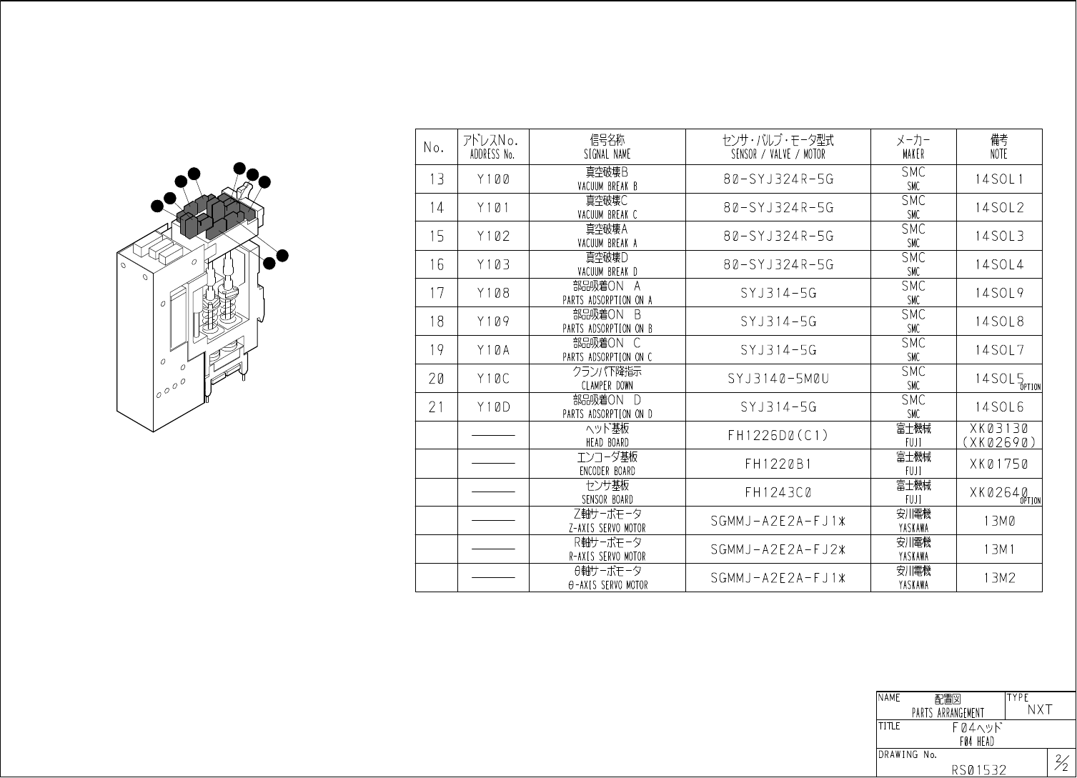 1 5 6 2 4 3 11 1 mm SIGNAL NAME 7 KV 7 NO . ADDRESS No . t : 对 • / % 〕 • _ 夕型式 SENSOR / VALVE / MOTOR No . CLAMPER DOWN S M C I 1 S Y J 3 U 0 - 5 L 0 U 1 4 S 0 L 5 丫 1 0 8 SMC OPTION 匕 〉 確 認 PIN UNCLAMP CHECK 才 厶 □ : y 1…