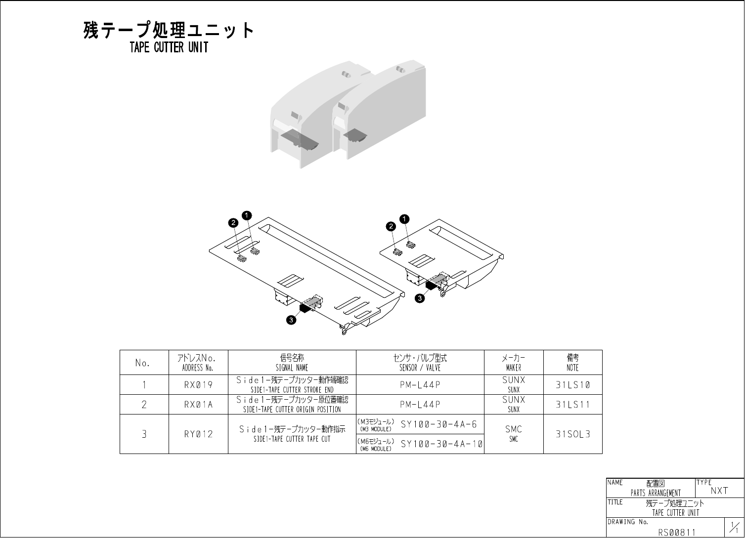残亍一夕処理 1 二 、 : / 卜 TAPE CUTTER UNIT 信号名称 SIGNAL NAME 備考 7 KVXNO . ADDRESS No . tW . / M 式 SENSOR / VALVE 乂一力一 N o . MAKER NOTE S i d e 卜残 7 - 力 ^ 夕 - 難 i « tS SI DEI - TAPE CUTTER STROKE END S U N X R X 0 1 9 P M - L 4 4…
