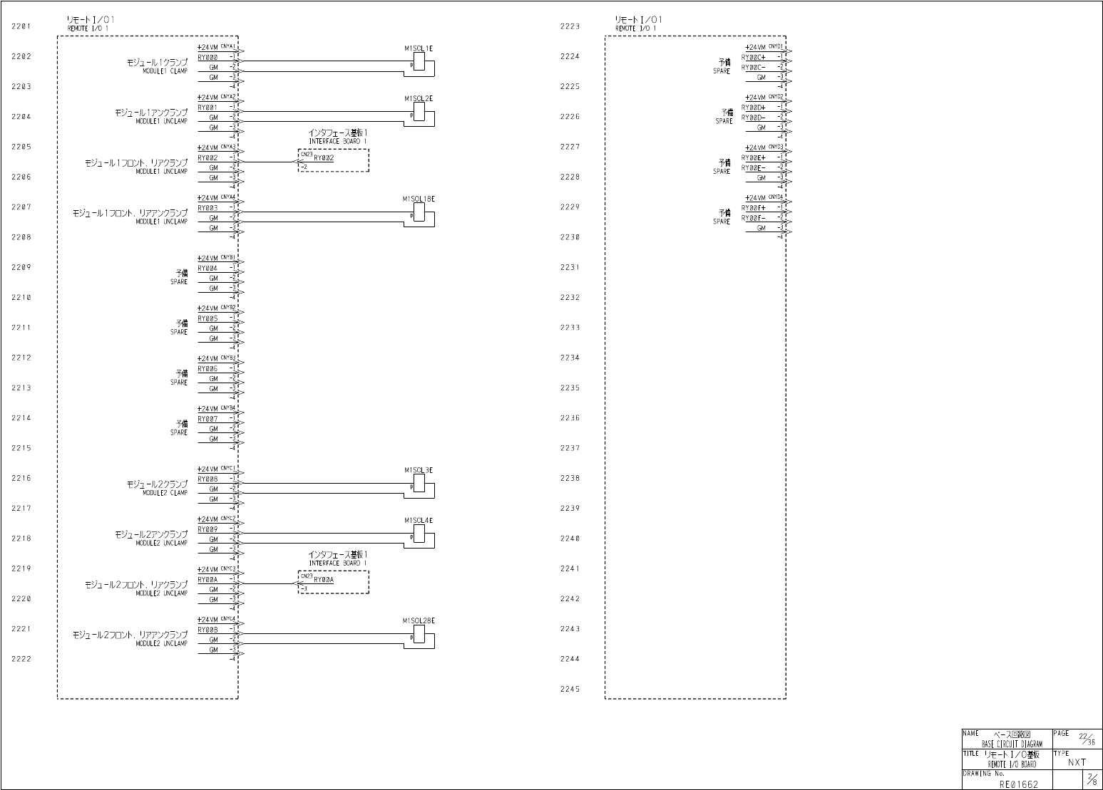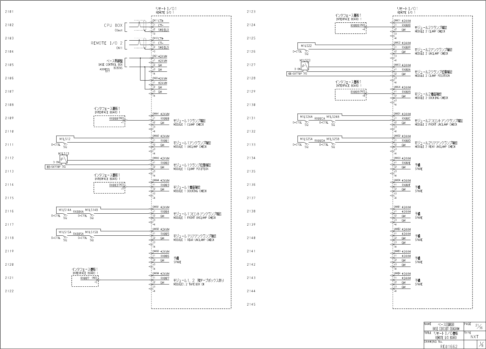 U t - h I / 0 1 REMOTE I / O 1 U t - M / O I REMOTE I / O 1 2 1 0 1 2123 < 汐夕 〕 工 - 又基板 1 INTERFACE BOARD 1 + 24 - VM A 2 1 0 2 2124 C P U B O X CUnet CT - RX 008 RX 008 石为 - 儿 2 夕 5 > 艾確認 MODULE 2 CLAMP CHECK SHIE…