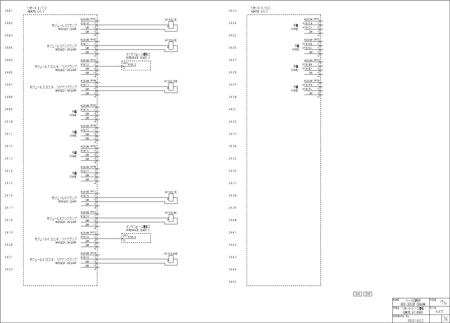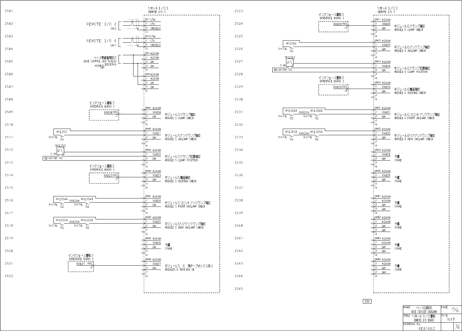 U t - h I / 0 3 REMOTE I / O 3 U t - M / 0 3 REMOTE I / O 3 250 I 2523 < 汐夕 〕 工 - 又基板 3 INTERFACE BOARD 3 RX 028 H C T + CNXC 1 + 24 VM A 2502 2524 R E M O T E I / O 2 - i CT - RX 028 MODULE 6 CLAMP CHECK - 2 SHIELD G…