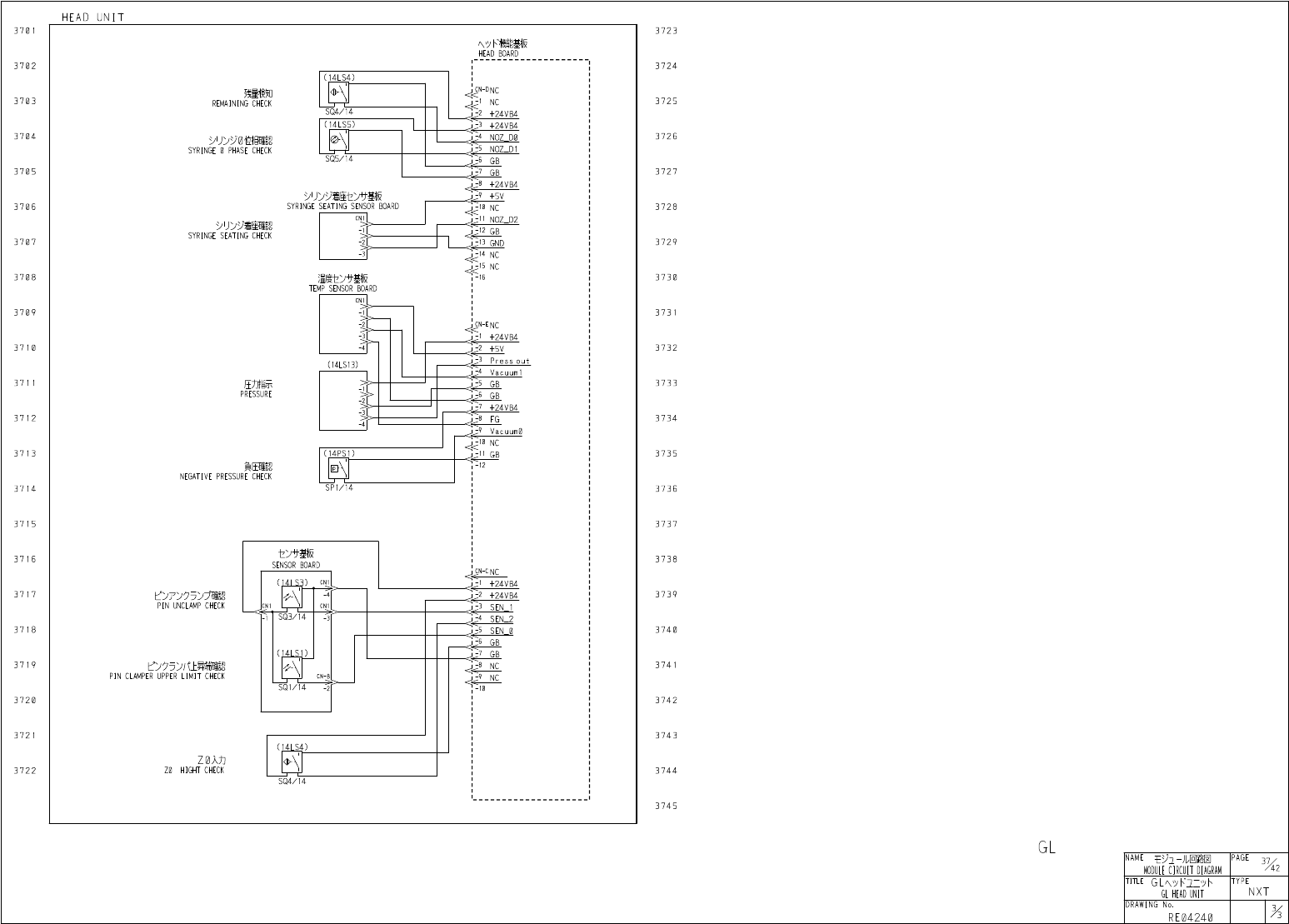 H E A D U N I T 3 7 0 I 3 7 2 3 W 機能基板 H E A D B O A R D 3 7 0 2 3 7 2 4 ( H L S 4 ) D N C 残量検知 R E M A I N I N G C H E C K 3 7 0 3 3 7 2 5 N C S Q 4 / U 二 2 + 2 4 V B 4 ( 1 4 L S 5 ) ^ 3 + 2 4 V B 4 3 7 0 4 3 7 2 6 N O …