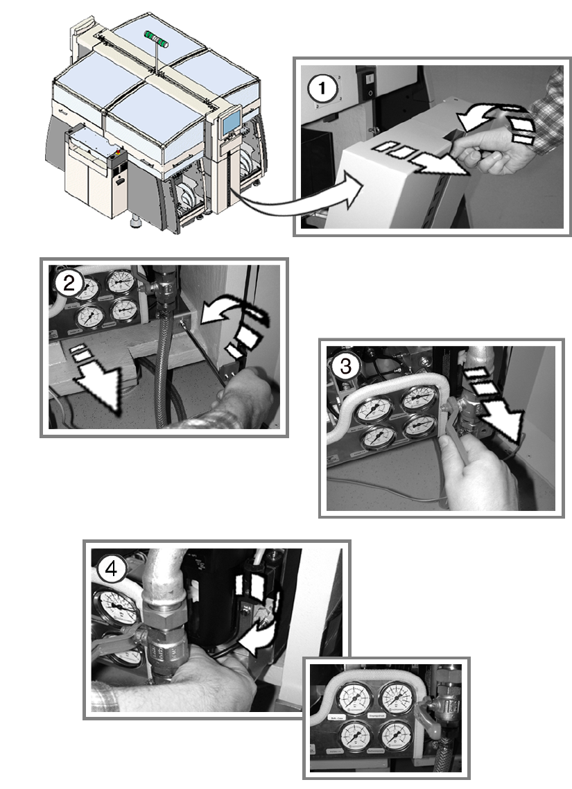 ① 用贴片机钥匙打开压缩空气供给装置门,并卸下。