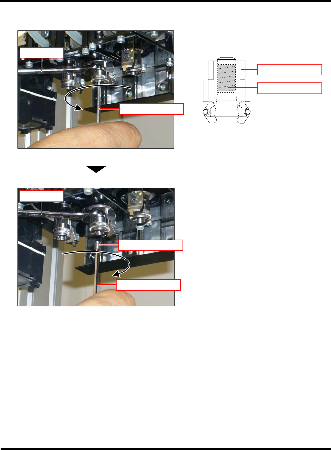 CM101-D 维修手册 1.4 140 小时检查一次 ( 一周一次 ) Pa ge 1- 72 EJM5B-01 3E 芯片排出位置 4. 吸嘴的安装 1. 关闭安全盖,将伺服开关置于 ON ( I ) 。 2. 按操作面板的 + [ 芯片排出位 置 ] 。 • 吸头将移动到芯片排出 位置上。 前面 3. 按 [ 吸嘴设定 ] 。 • 吸嘴设定画面将被显示 。请在画面上确认吸嘴 配置的同时,进行如下 操作。 4. 将伺服开关置于 OF…