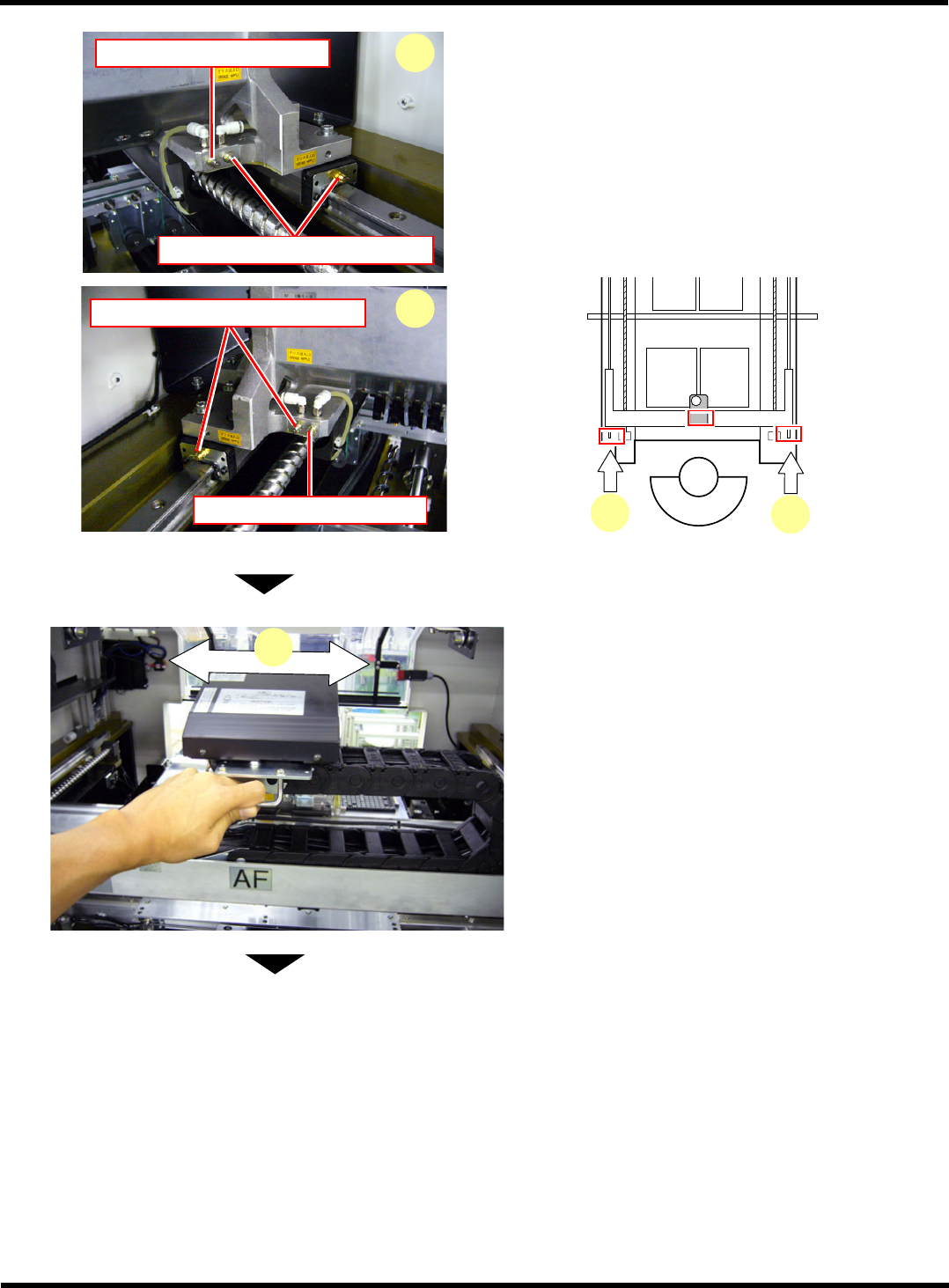 CM101-D 维修手册 1.6 560 小时检查一次 ( 每月一次 ) Pa ge 1- 95 5. 从润滑脂注入口向 Y 轴线性轴承、 Y 轴滚 珠丝杠处注入润滑脂。 • 请在 Y 轴全行程移动的 同时注油。 • 请在每处挤压 2 次 ( 约 1.8 c m 3 ) ,在全行程进 行等间隔划分的 5 个位置上进行注油 。 • 使用润滑脂 : MP 润滑脂 2S 6. 用手将 X 轴、 Y 轴在全行程范围内移动数 次,使润滑脂均匀涂抹…