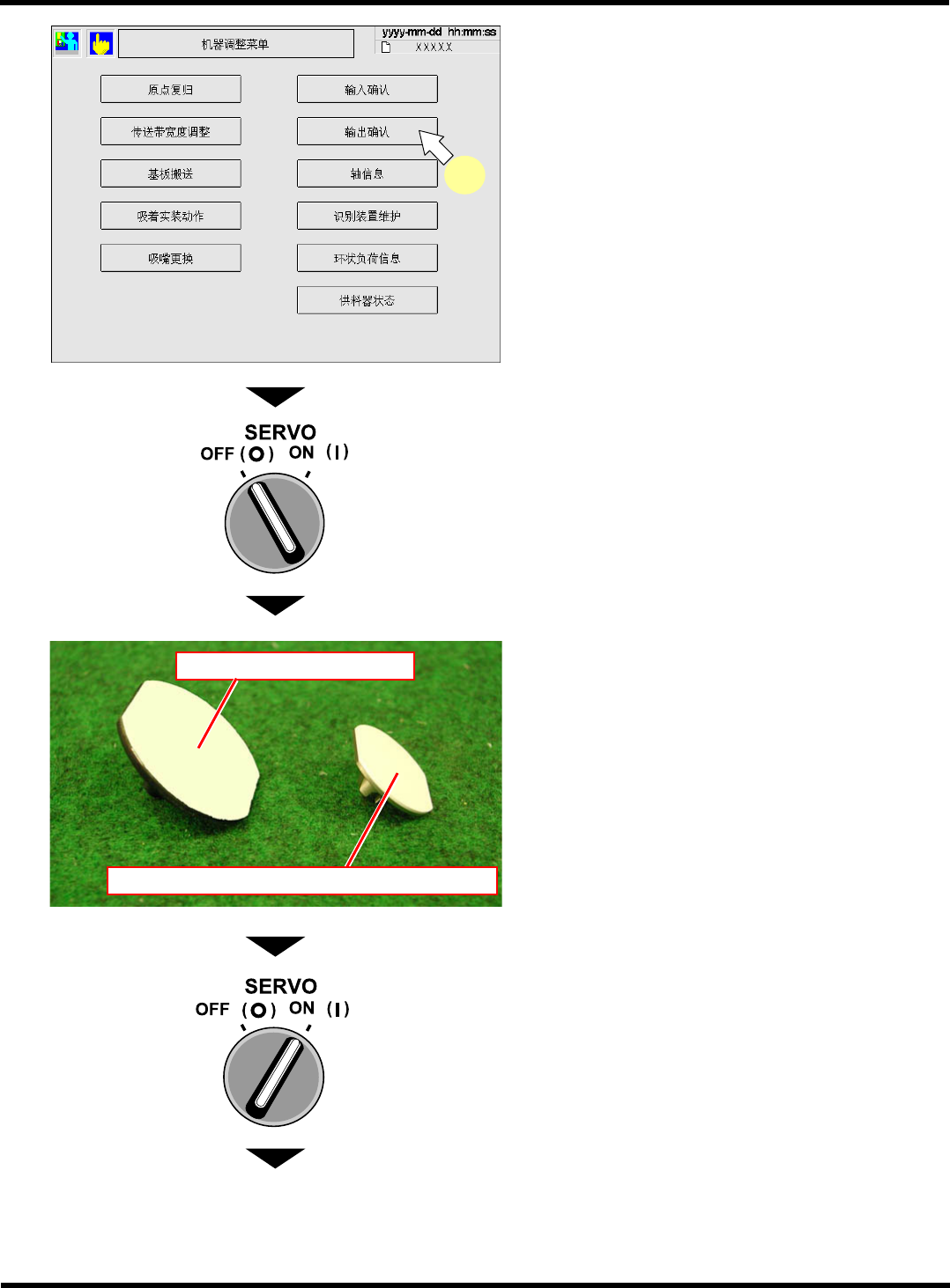 CM101-D 维修手册 1.8 6000 小时检查一次 (1 年一次 ) Page 1-1 46 7. 按操作面板的 + [ 真空泵 ] 。 • 真空泵启动后,显示从 OFF 变为 ON 。 8. 按操作面板的 + pos1 的 [ 真空 ] 。 9. 确认 pos1 的真空压力显示是否在 “90” 以 上。 ∗ 不足 “90” 时有需要更换真 空泵的可能性。 请与本 公司联系。 10. 按操作面板的 + pos1 的 [ 真空 ] …