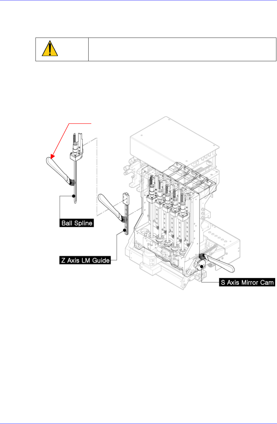 检查转轴 Ball Spline, LM 导轨, Mirror Cam有无灰尘、斑点。