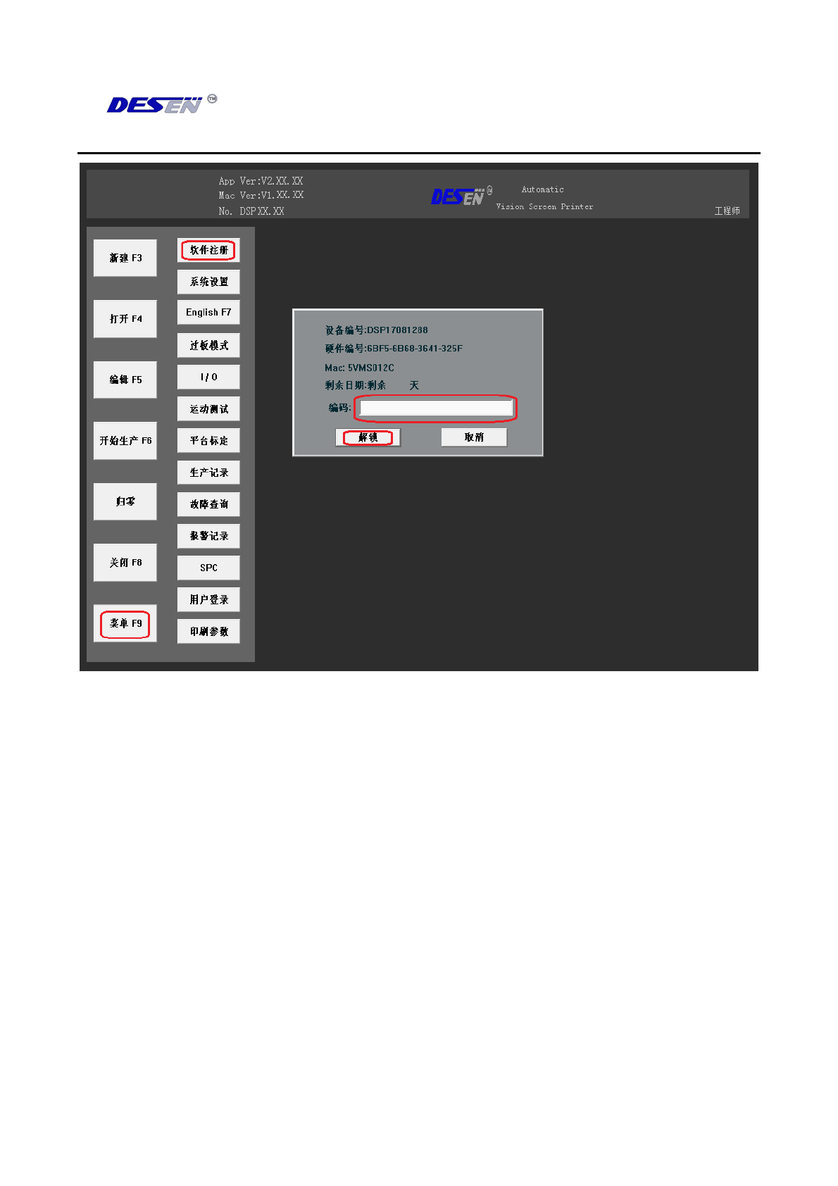 深圳德森精密设备有限公司 第四章 操作 系统说明 45 第四章 手动升级说明 ( 图 13 - 2) 点击解锁后,会看 到授权以下信 息(图 14 )!