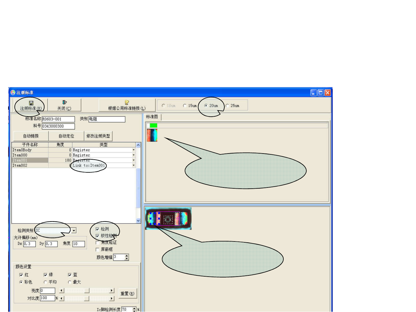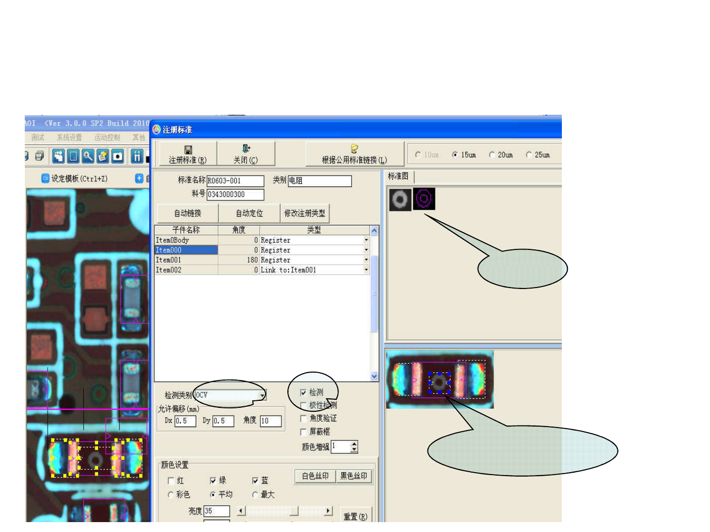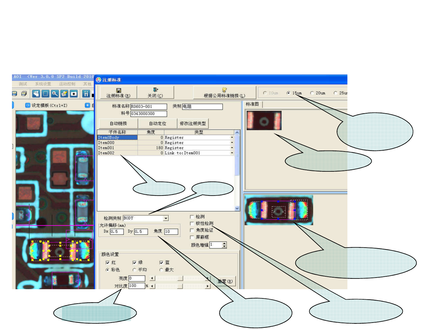 如下是带丝印框电阻的注册界面,检测项目有四项:Item0Body,Item000,