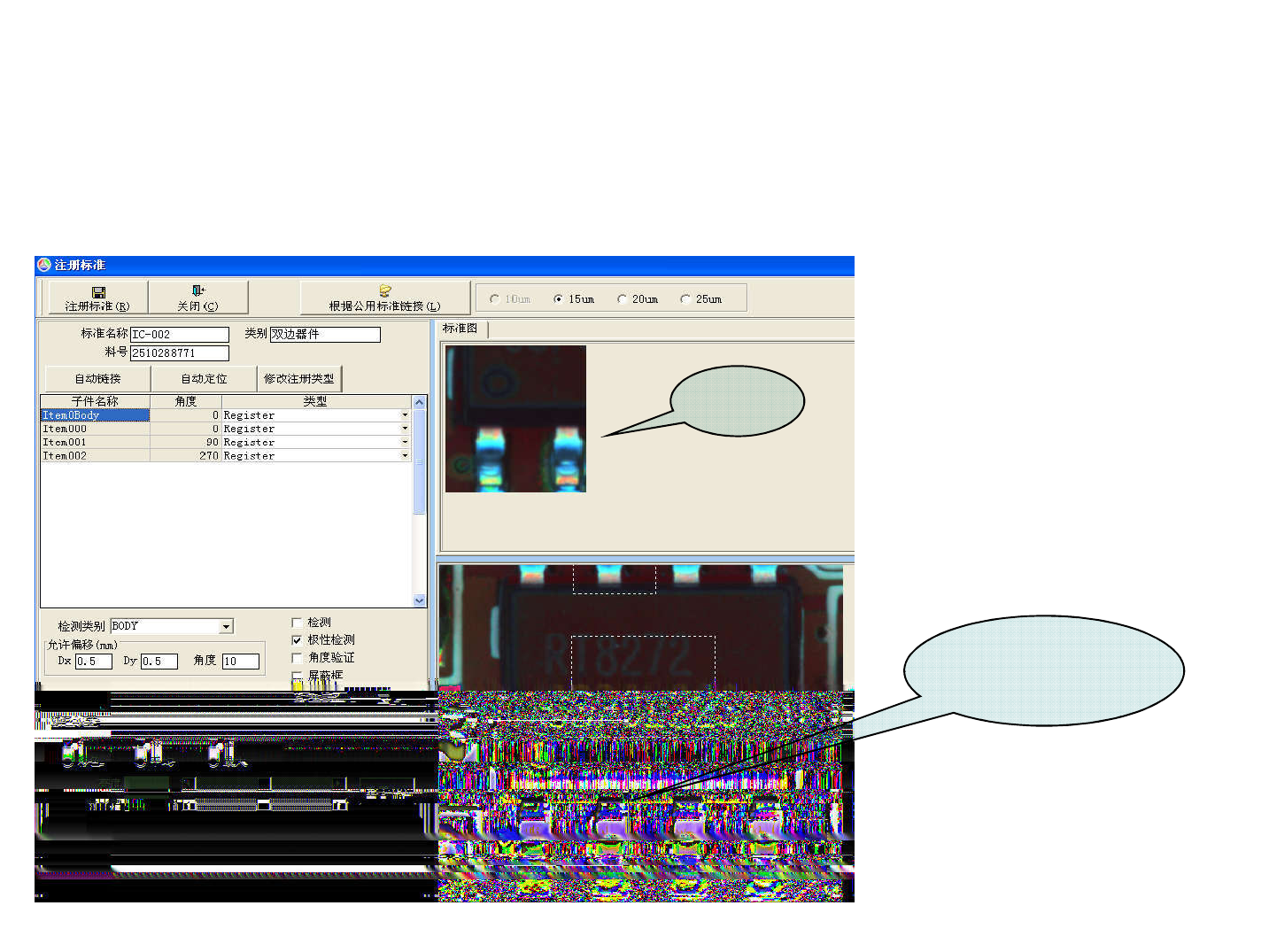画SOP 注册模型时。把其中两个窗口移到SOP的对角,两个窗 口要把零件围住,如下。在下一页的注册界 面里,才能出现 一个完整的IC,然后右键选择“注 册标准”进入注册界面,