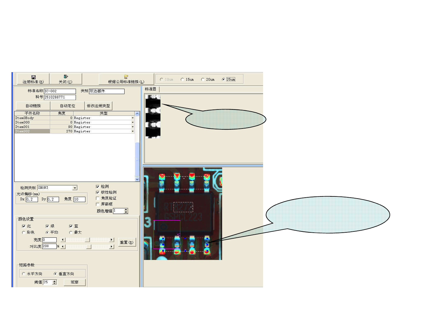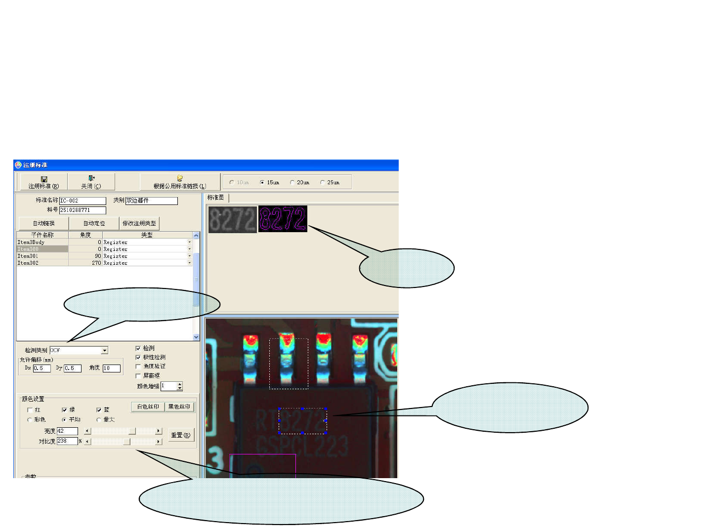 如下选中是丝印测试项目,默认检测类别为“OCV”,