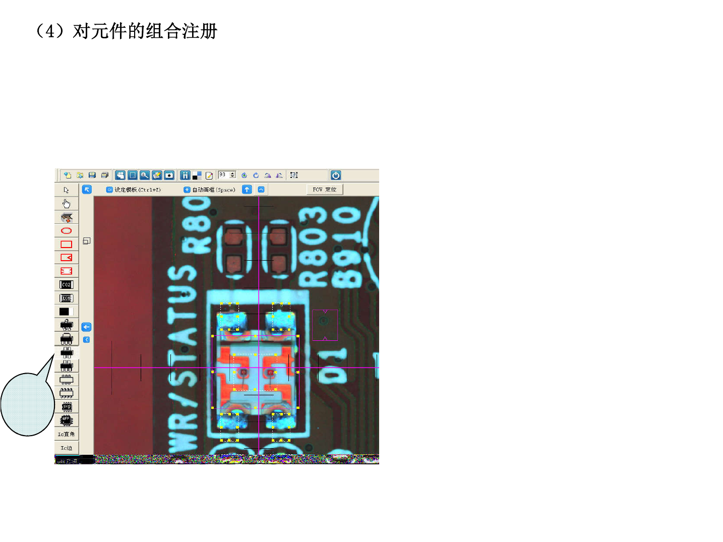 如下零件选择“四角器件注册模块” 因为没有测试短路窗口,要用到组合 四角器 件注册 模块