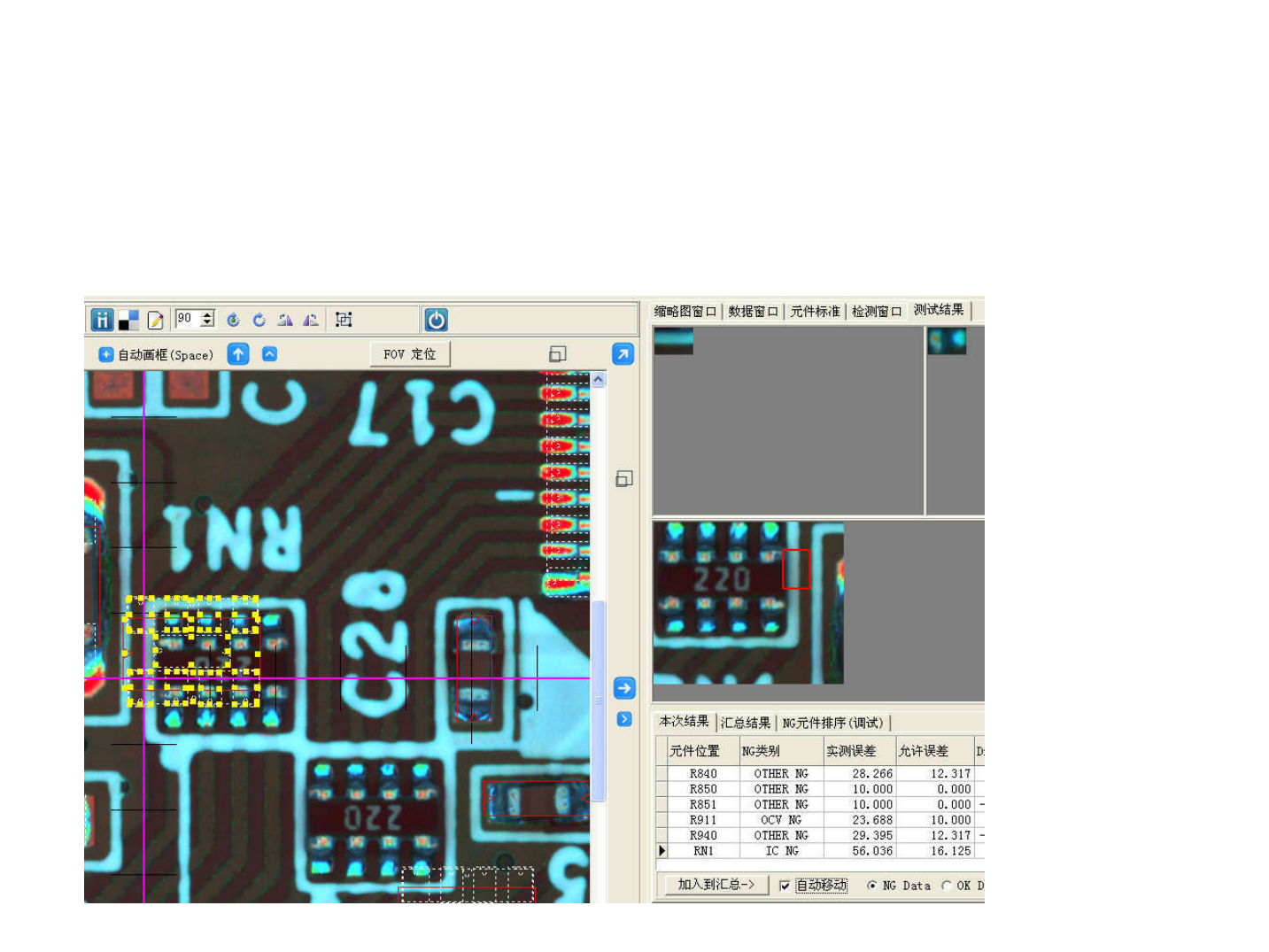 如下RN1位置,测试窗口与零件偏移,点击“FOV定位”进行定位。