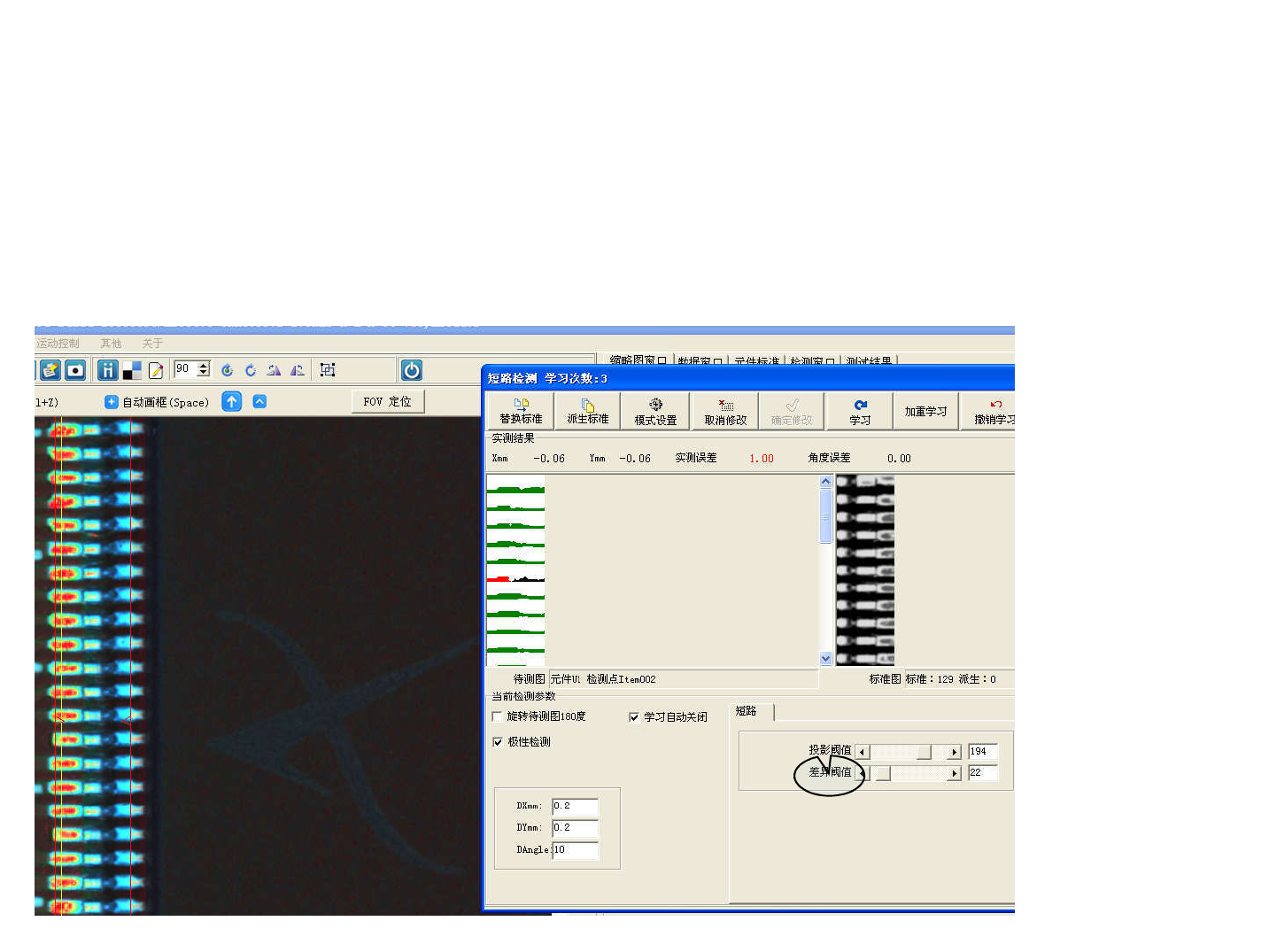 报短路,从右边的零件确 认是误判, 调试: 派生标准或者微调“差异阀值”