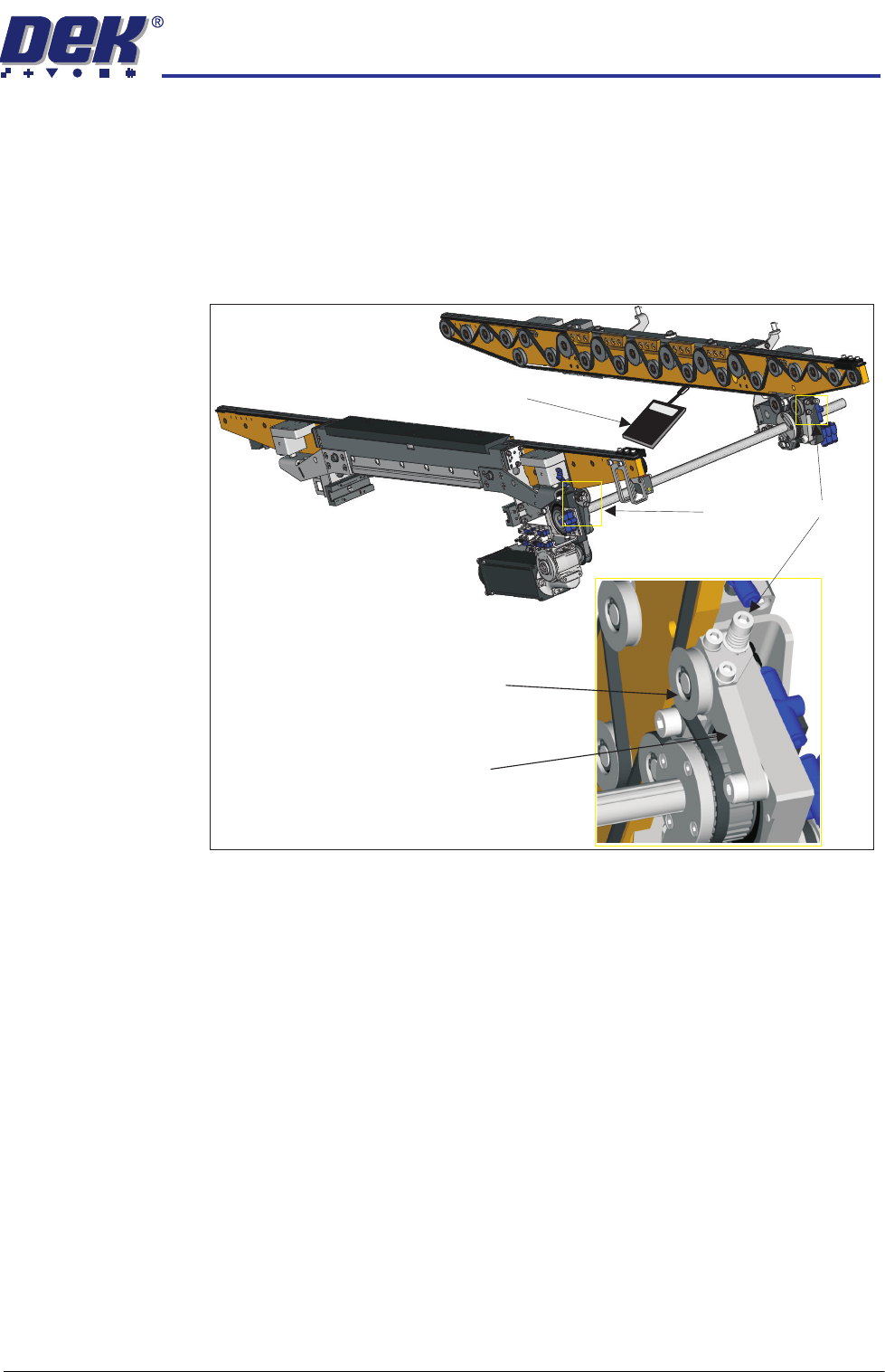 In general, the sensor is positioned so that the transport belts in the DEK printer