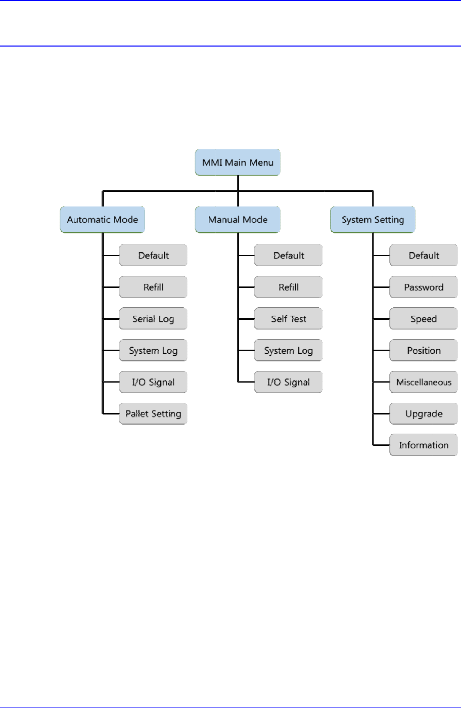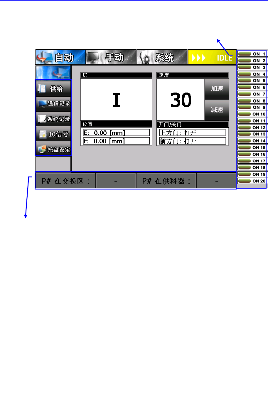 MMI 菜 单结构 6-3 6.2. MMI 基本画面及命令选择 MMI 的基本画面如下 , 选择命令时点 击相关菜单图标。 图 6-2. MMI 基本画面 Pallet Status 辅 助 菜 单 Change Rack Status SMT 顶级人脉圈平台资料下载