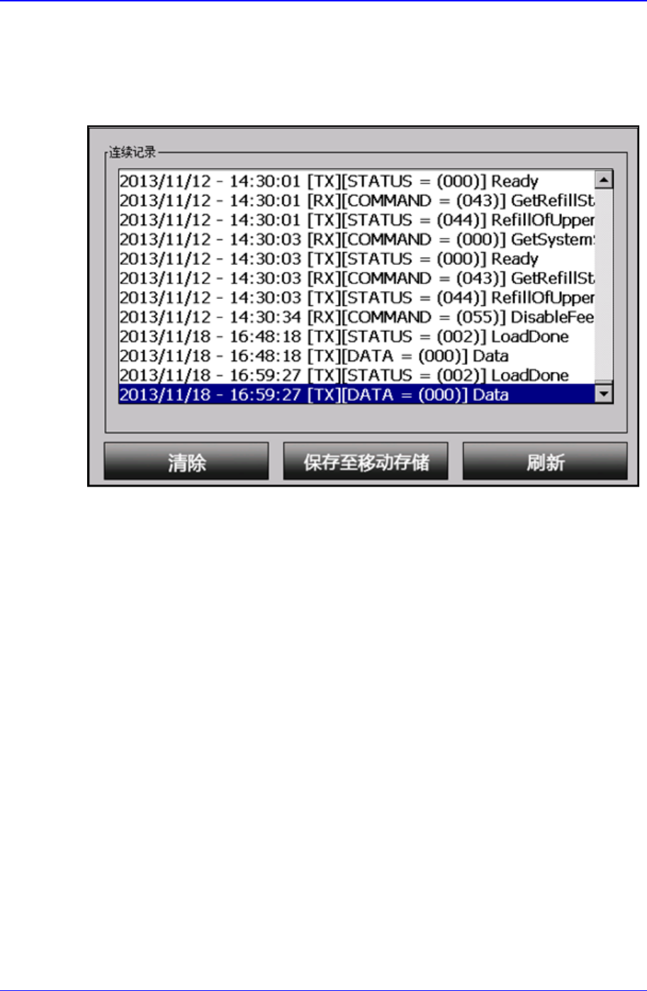 可确认通信日志,当前日志内容可复制到 USB 盘等外部硬件装置。