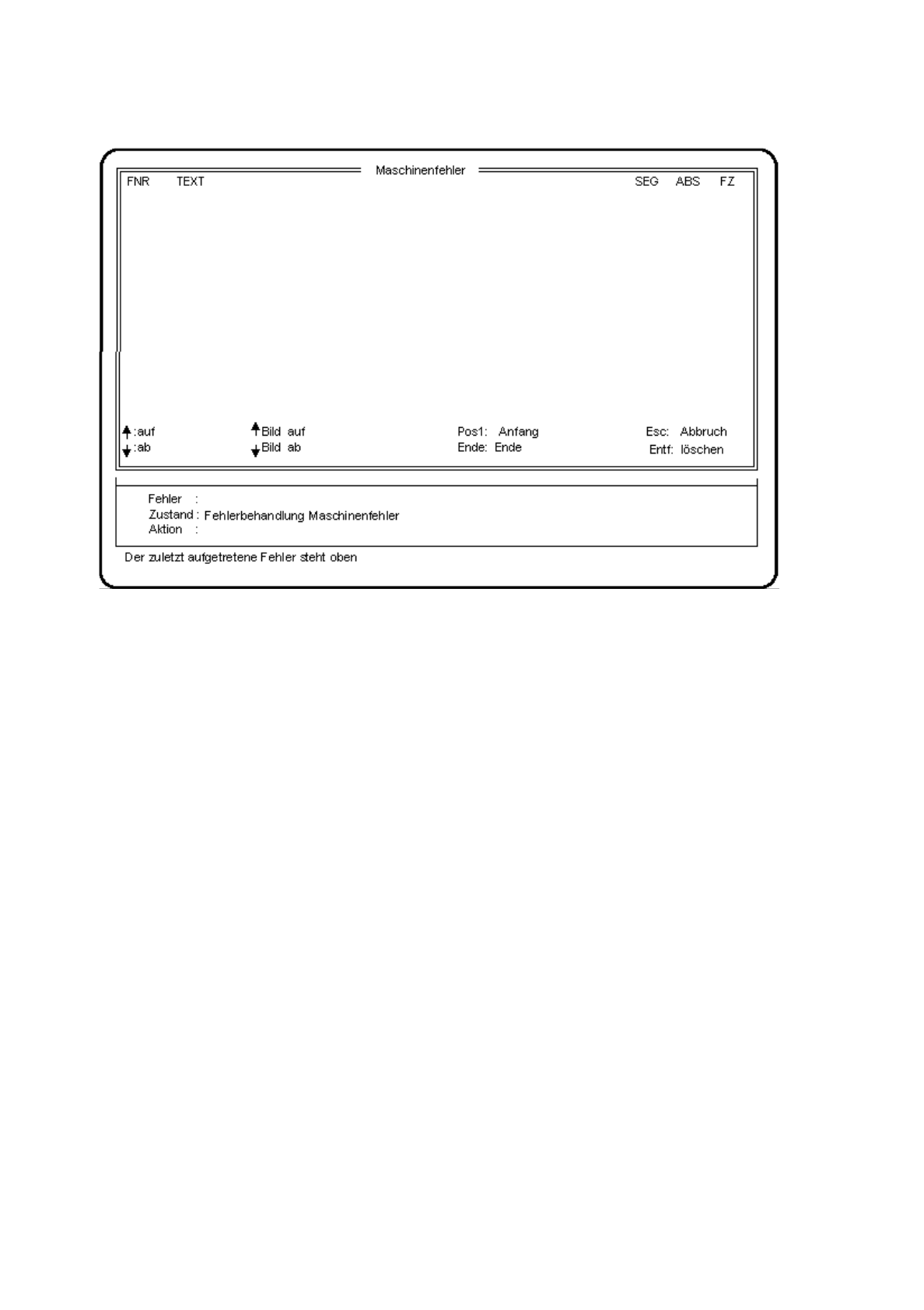 Menü "Maschinenfehler" aufgerufen wurde.