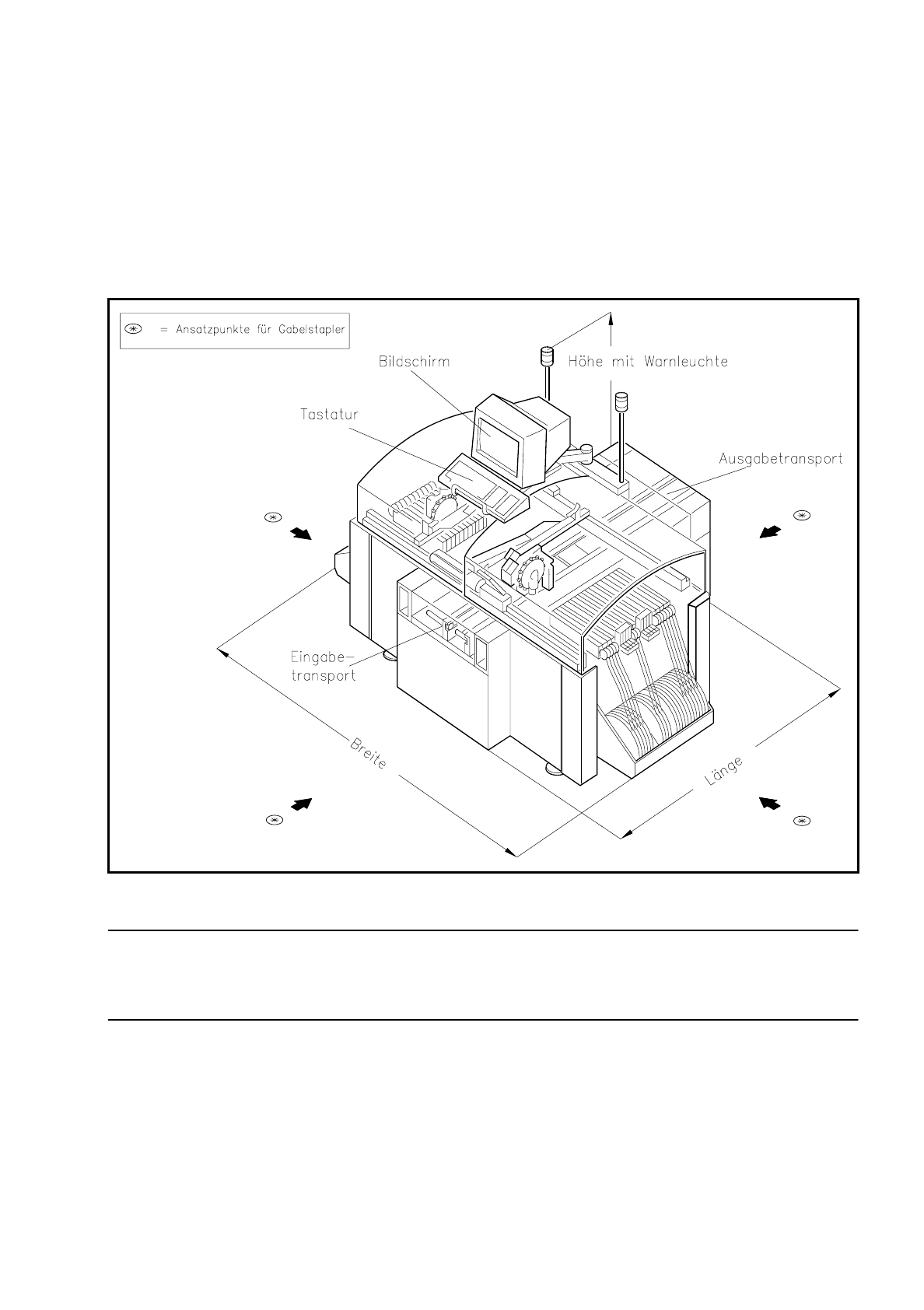 Die Ansatzpunkte für den Gabelstapler sind in Abb. 0.3.1 durch Pfeile gekennzeichnet.