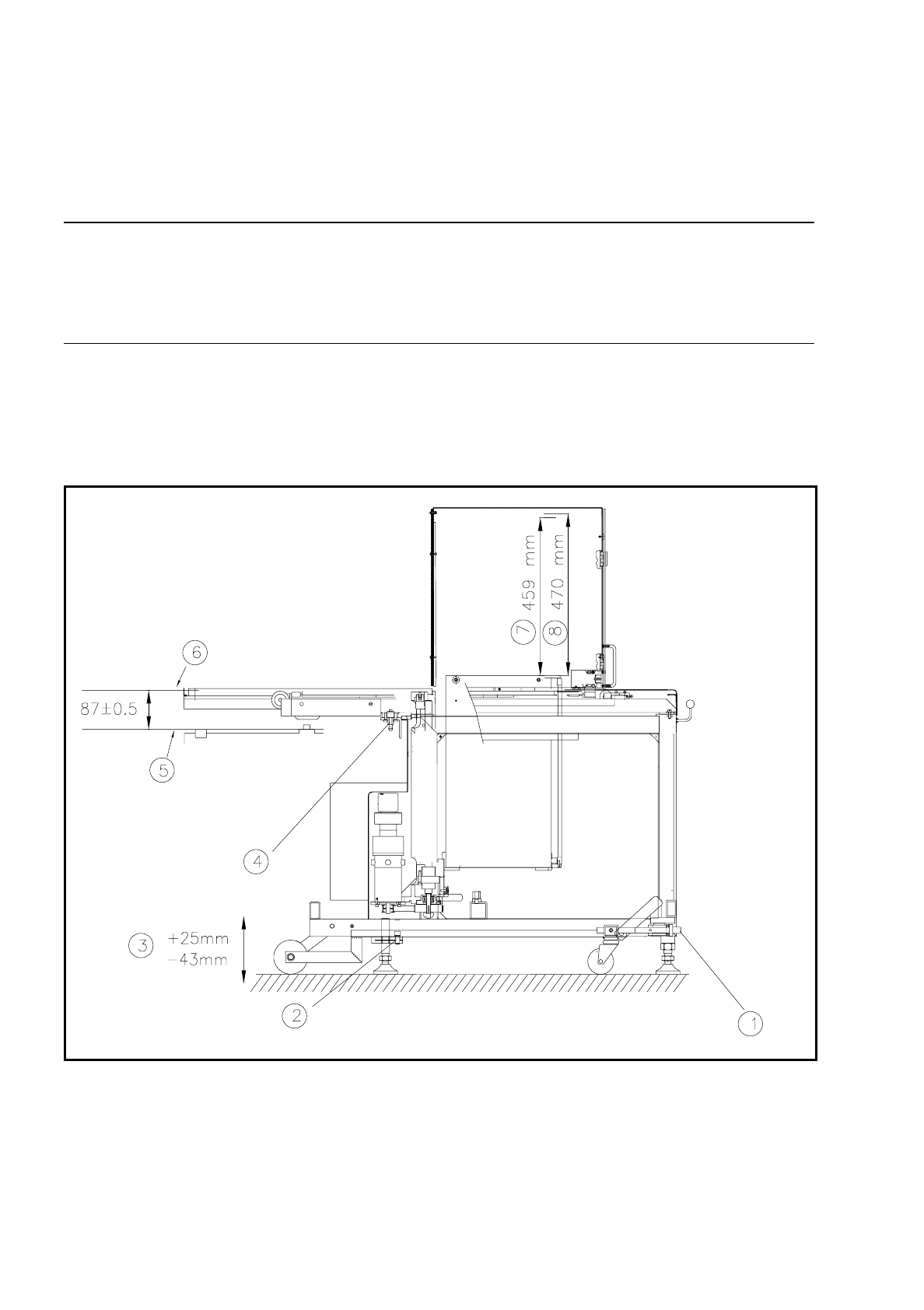 Kontrollieren Sie das Maß (87 +/- 0,5 mm), Unterkante Magazinträger zu Oberkante BE-Tisch (siehe Abb.